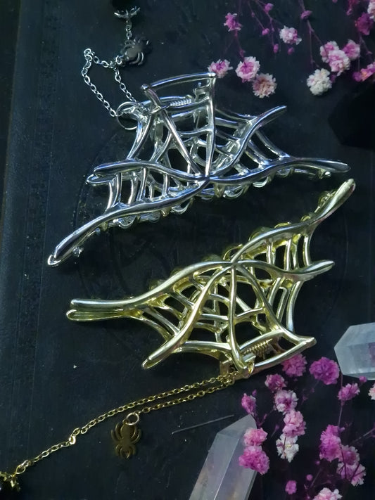 Spinnenetz Haarspange silber & gold