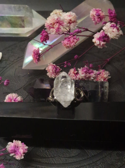 2 facher Ring mit Halbmonden und schwarzen Obsidian