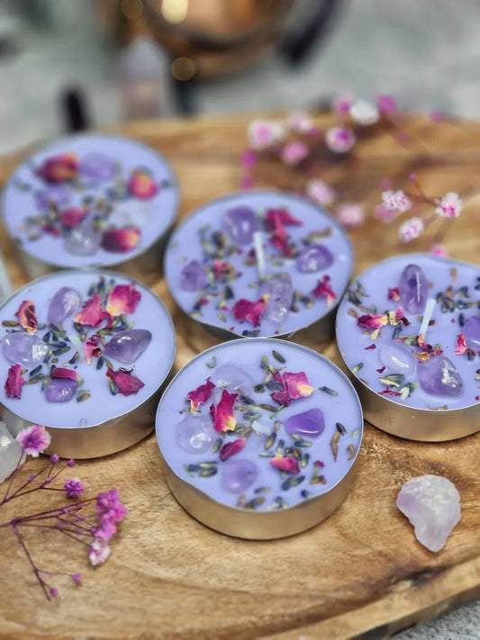Kristall Maxi Teelicht „Liebe & Mitgefühl“ mit Rosenquarz