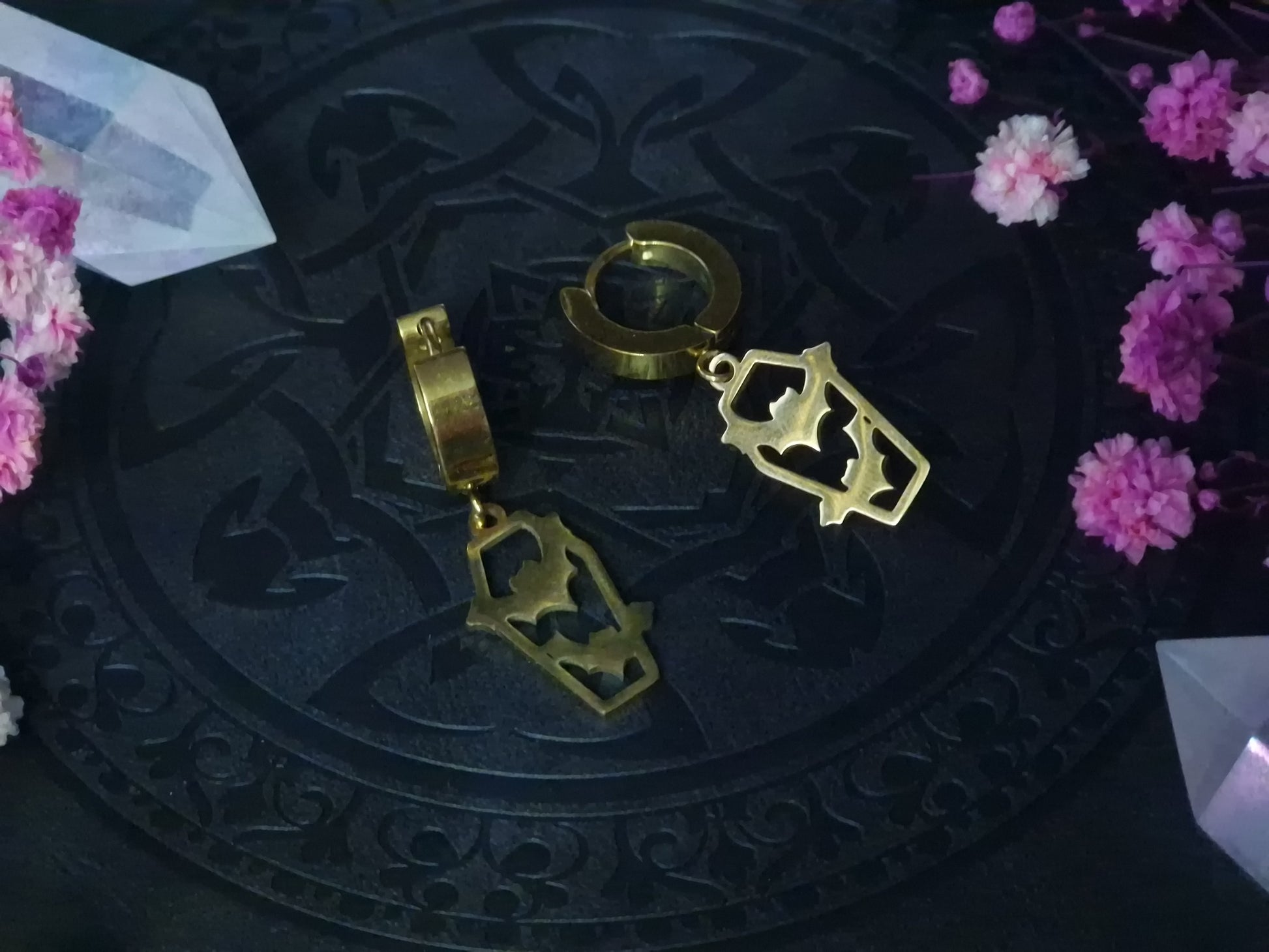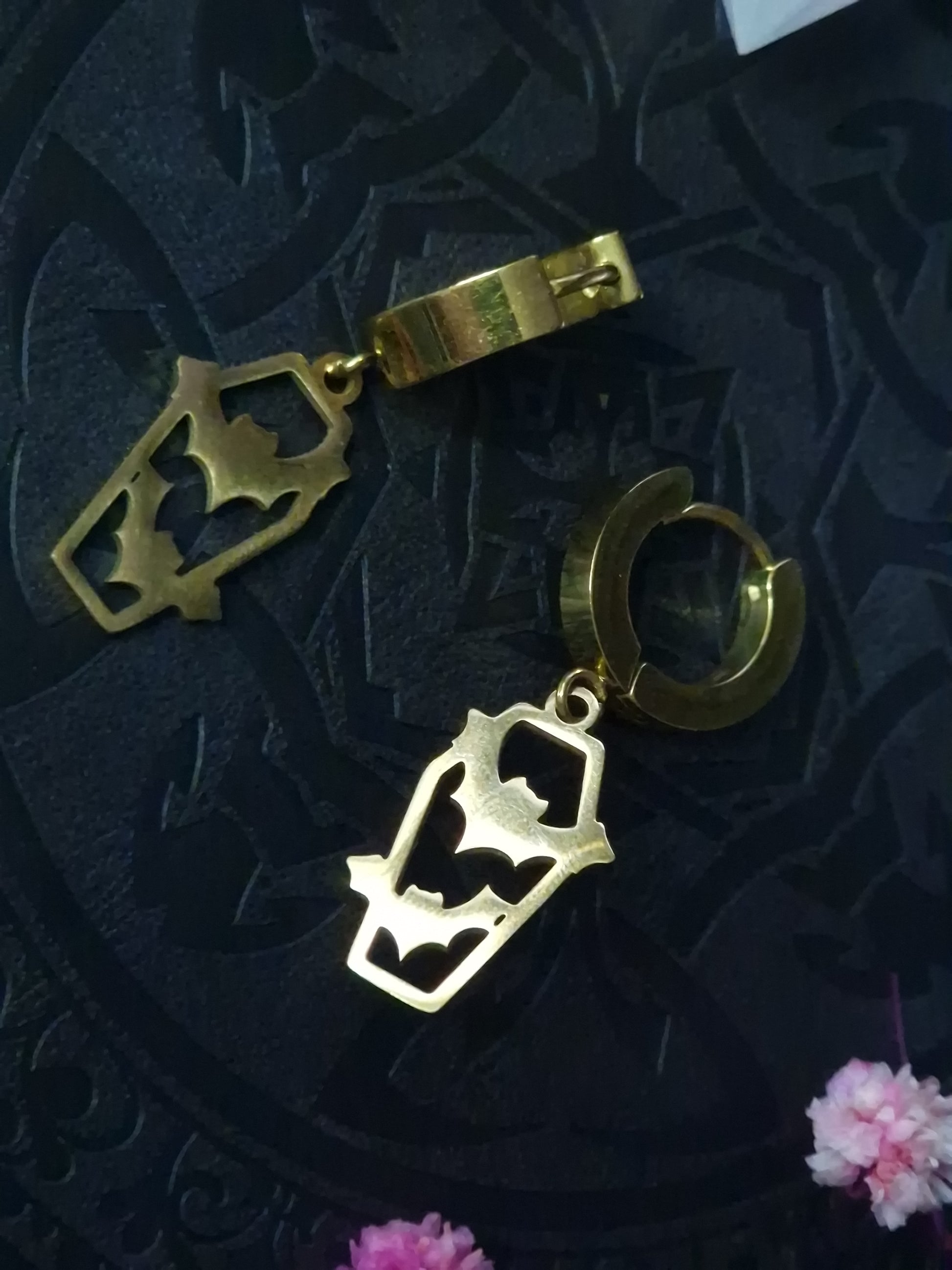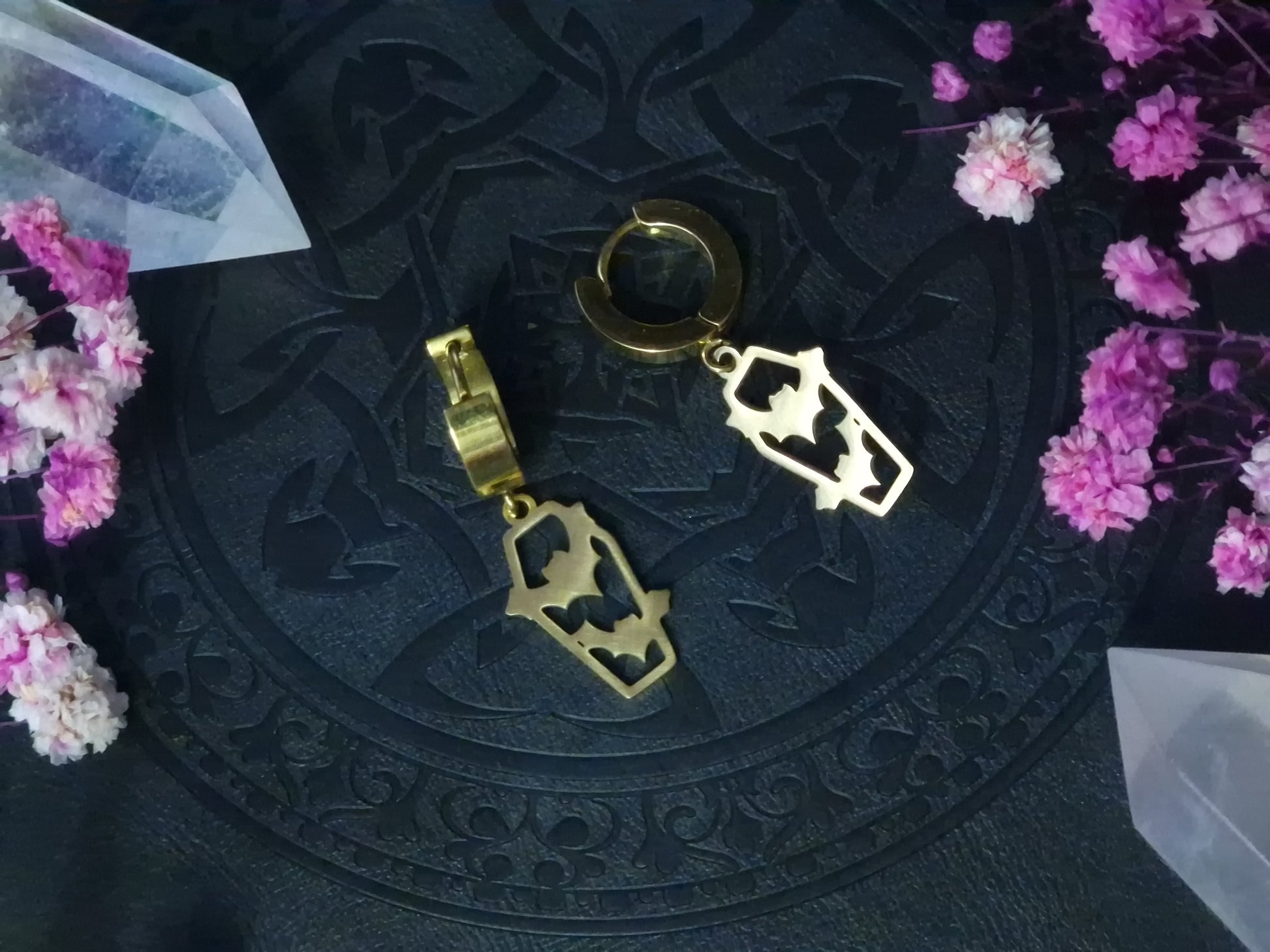 Diese Edelstahl-Ohrringe mit kleinen Särgen und eingearbeitetem Fledermaus-Design sind ein Must-have für alle Gothic Souls, die auf subtile, aber aussagekräftige Accessoires setzen.