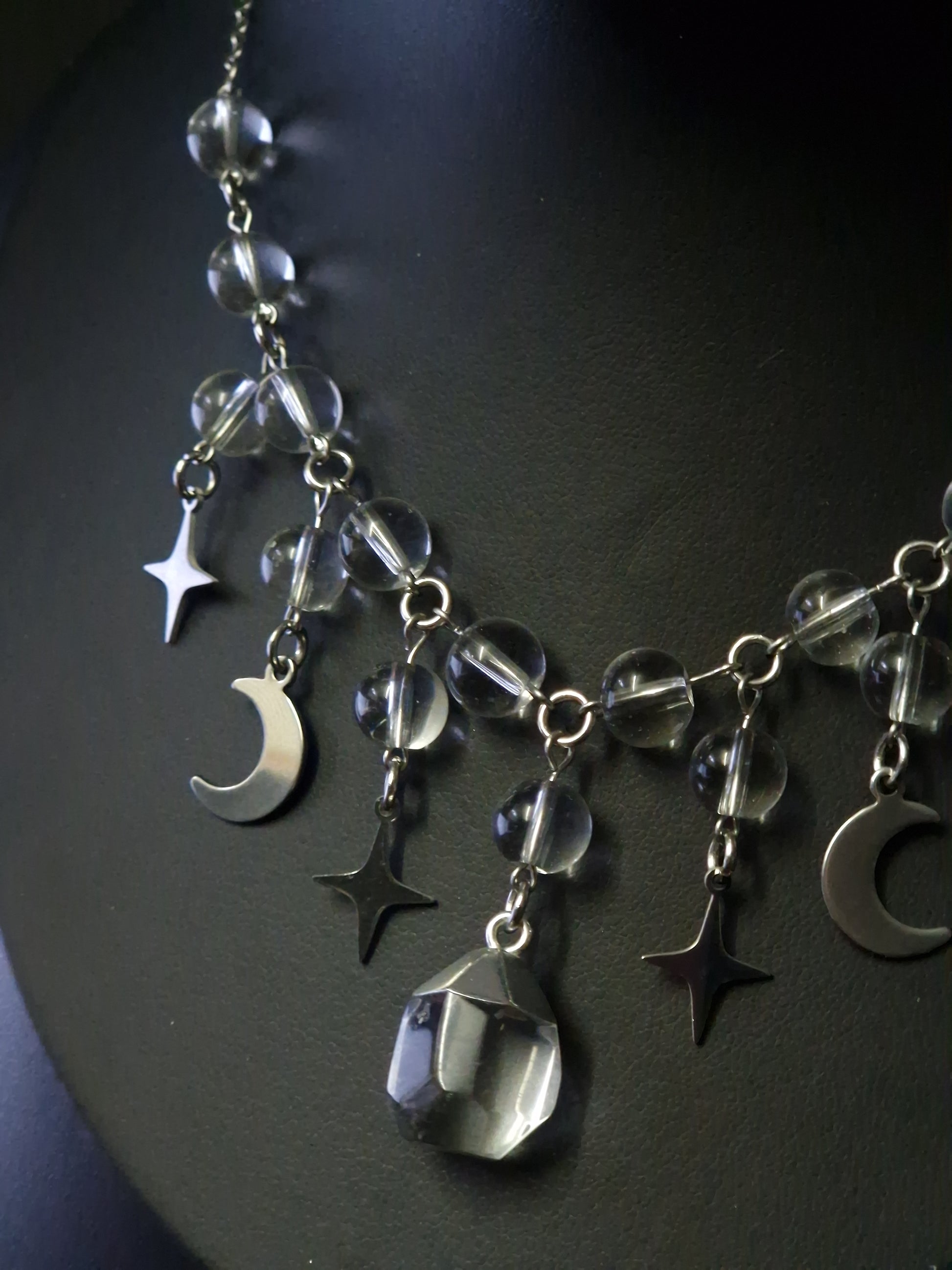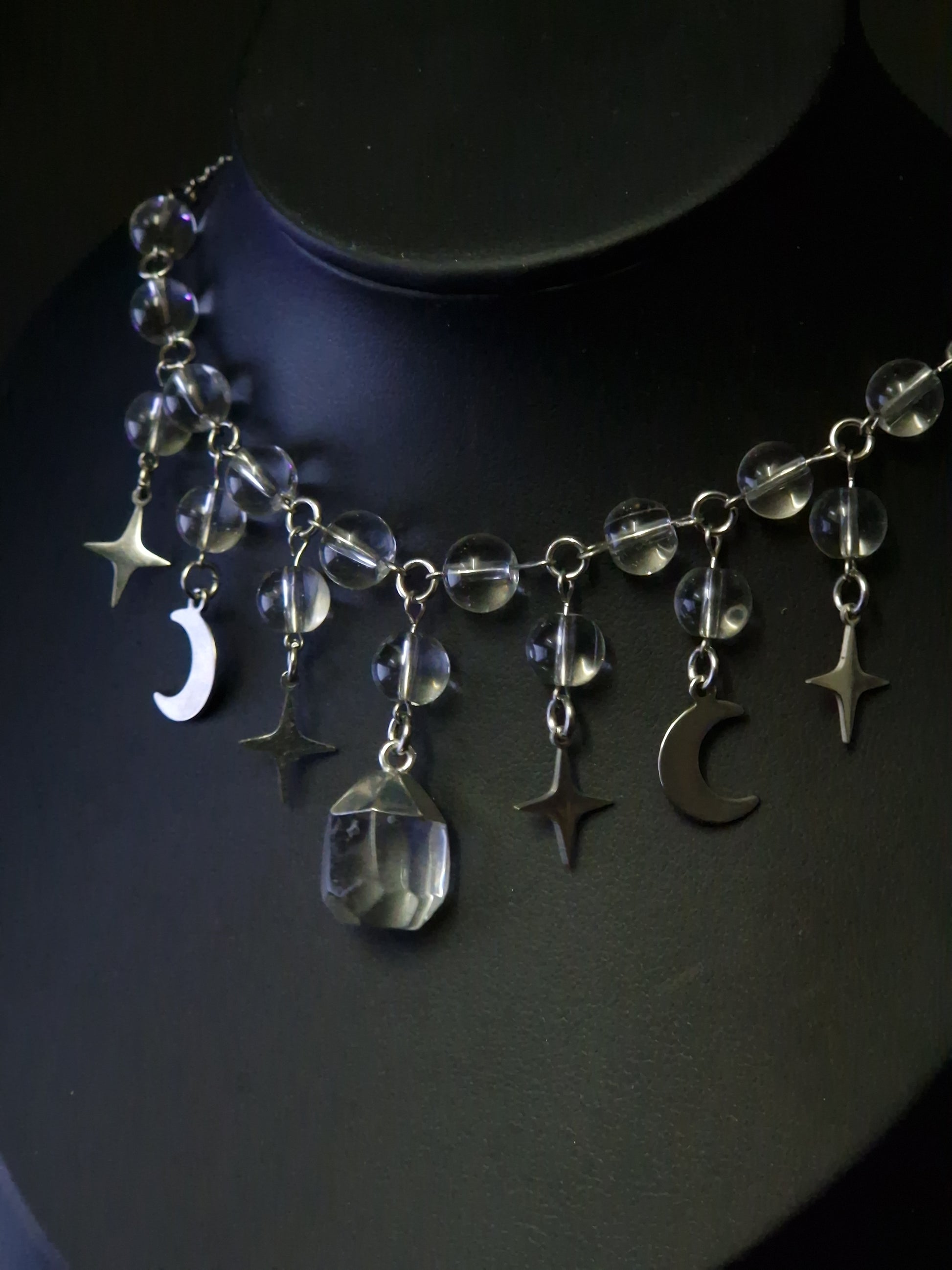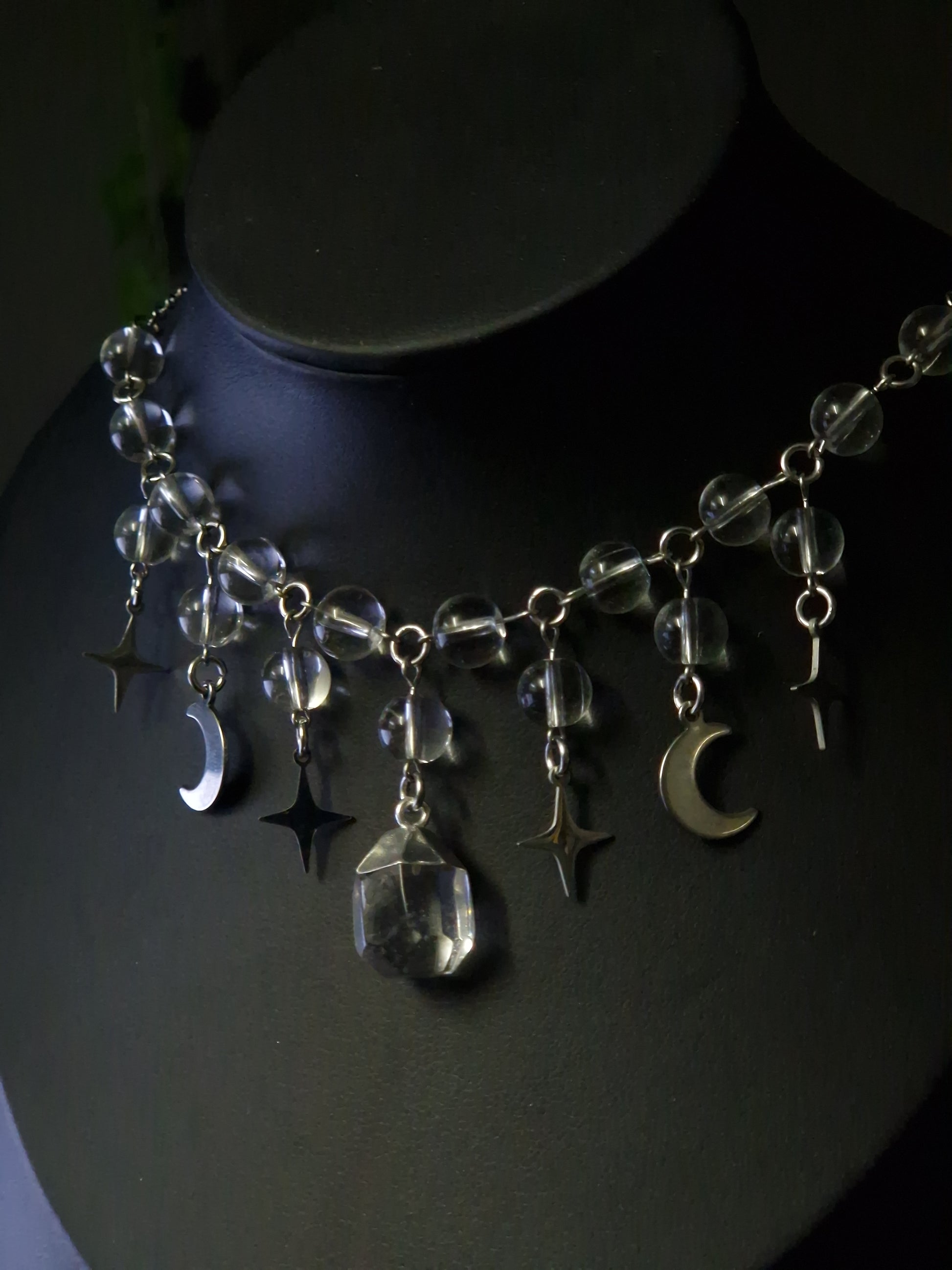 Kette mit Bergrkistall Anhänger und Quartzperlen.