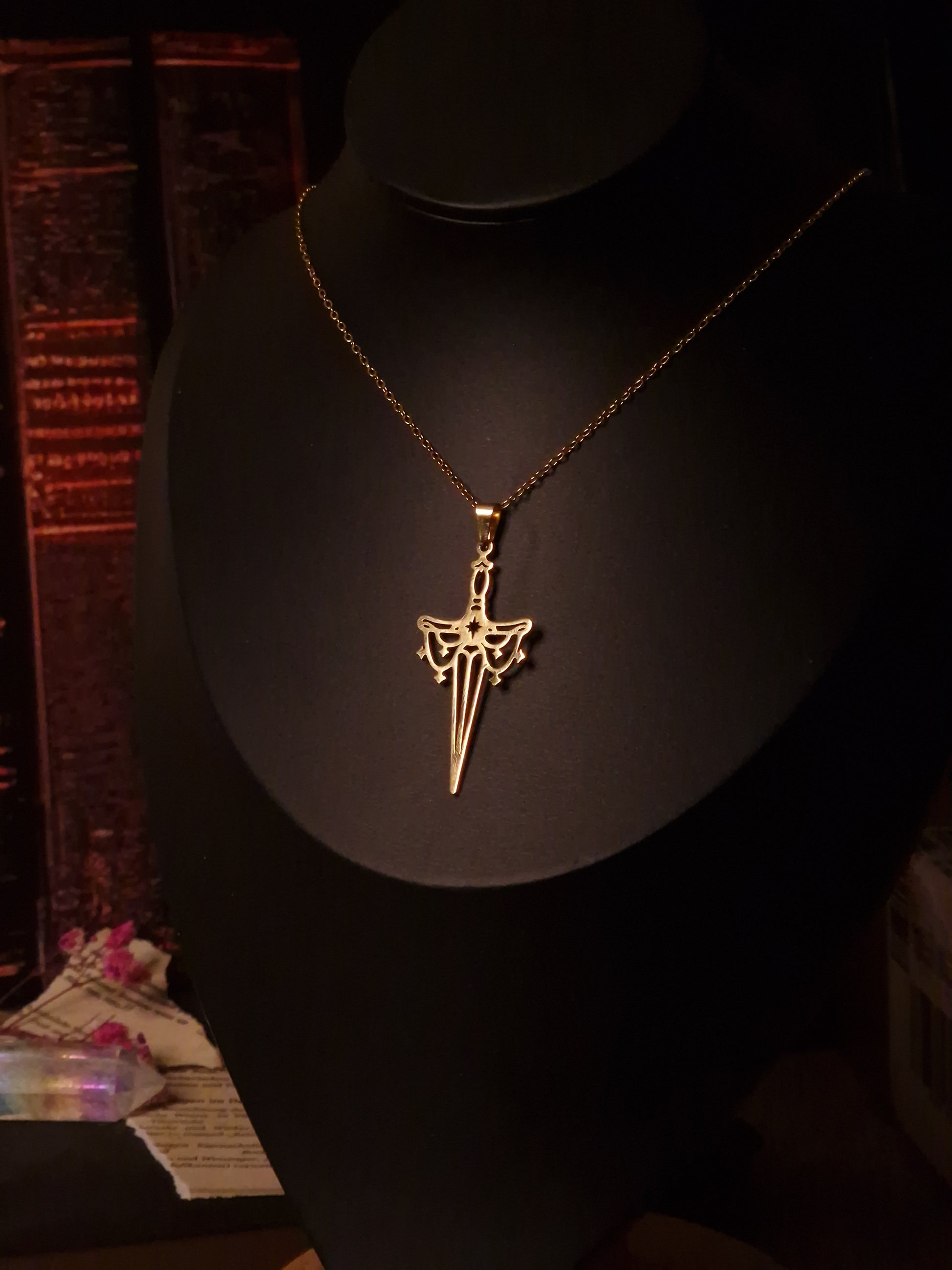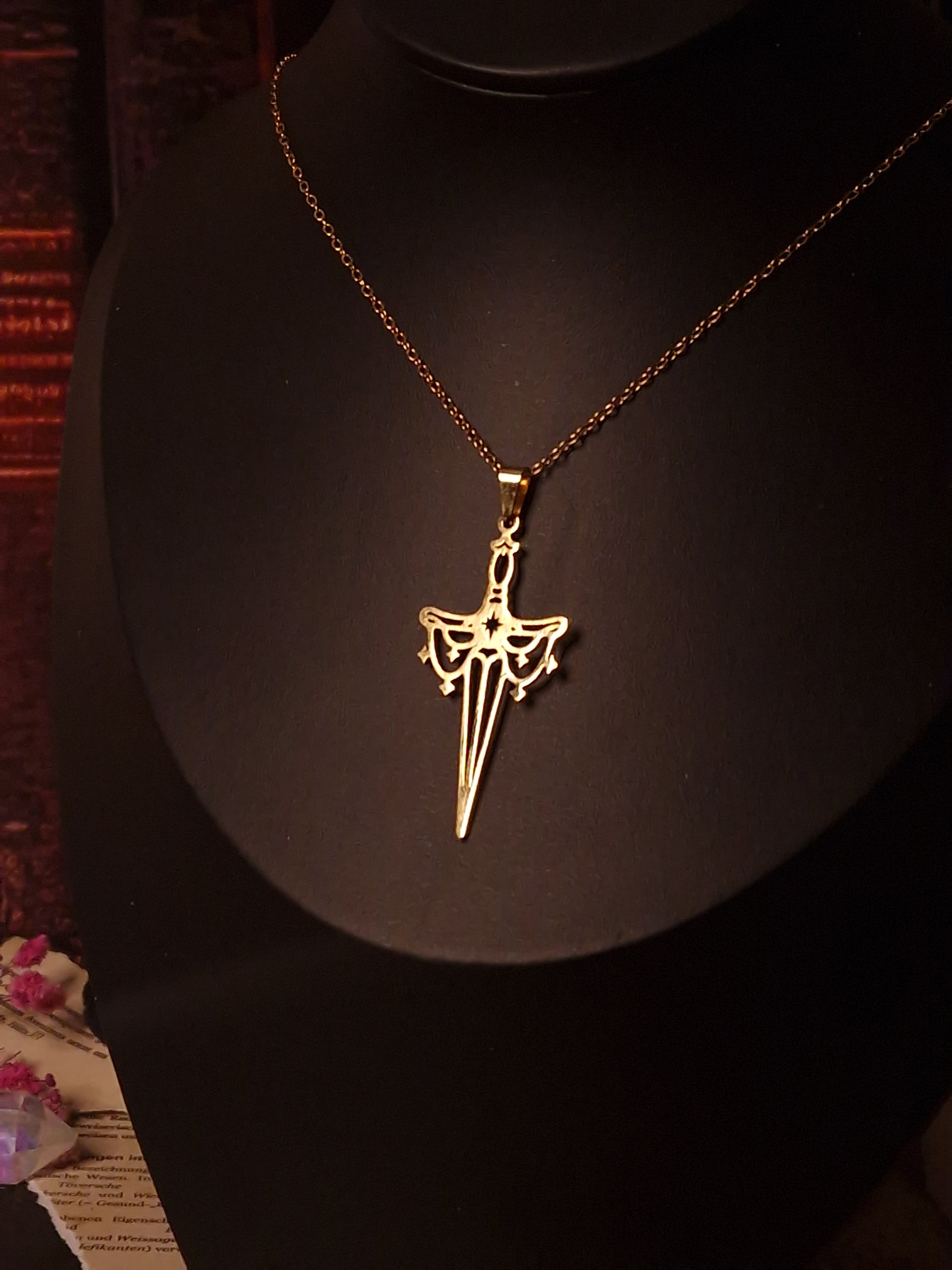 Ob als Schutzamulett, Ausdruck deiner inneren Kriegerseele oder stilvolles Statement – die „Celestial Blade“ trägt die Energie des Lichts in sich, das selbst im Dunkeln leuchtet. Sie begleitet dich durch Herausforderungen und erinnert dich daran, dass wahre Stärke stets mit Anmut getragen wird.