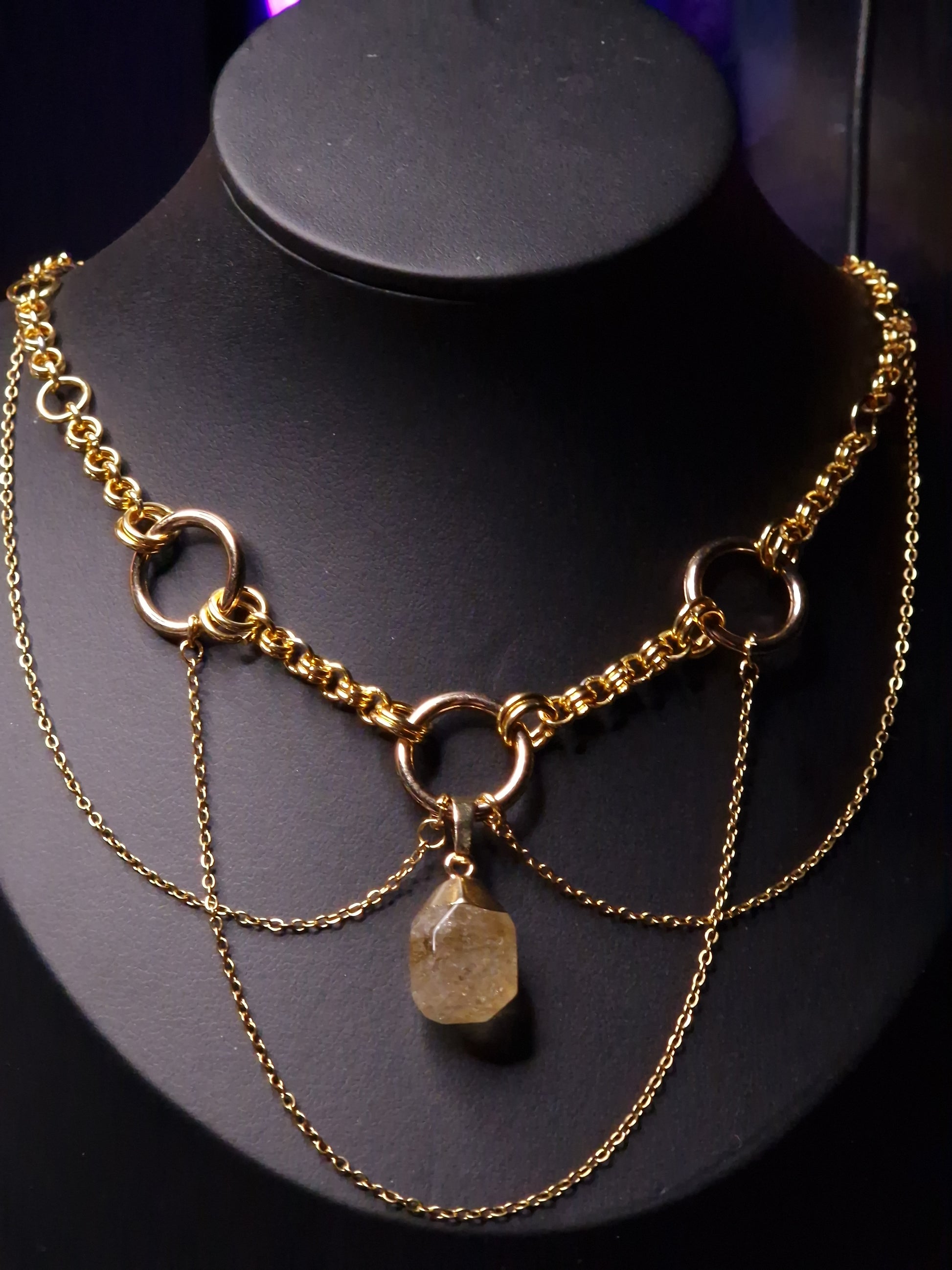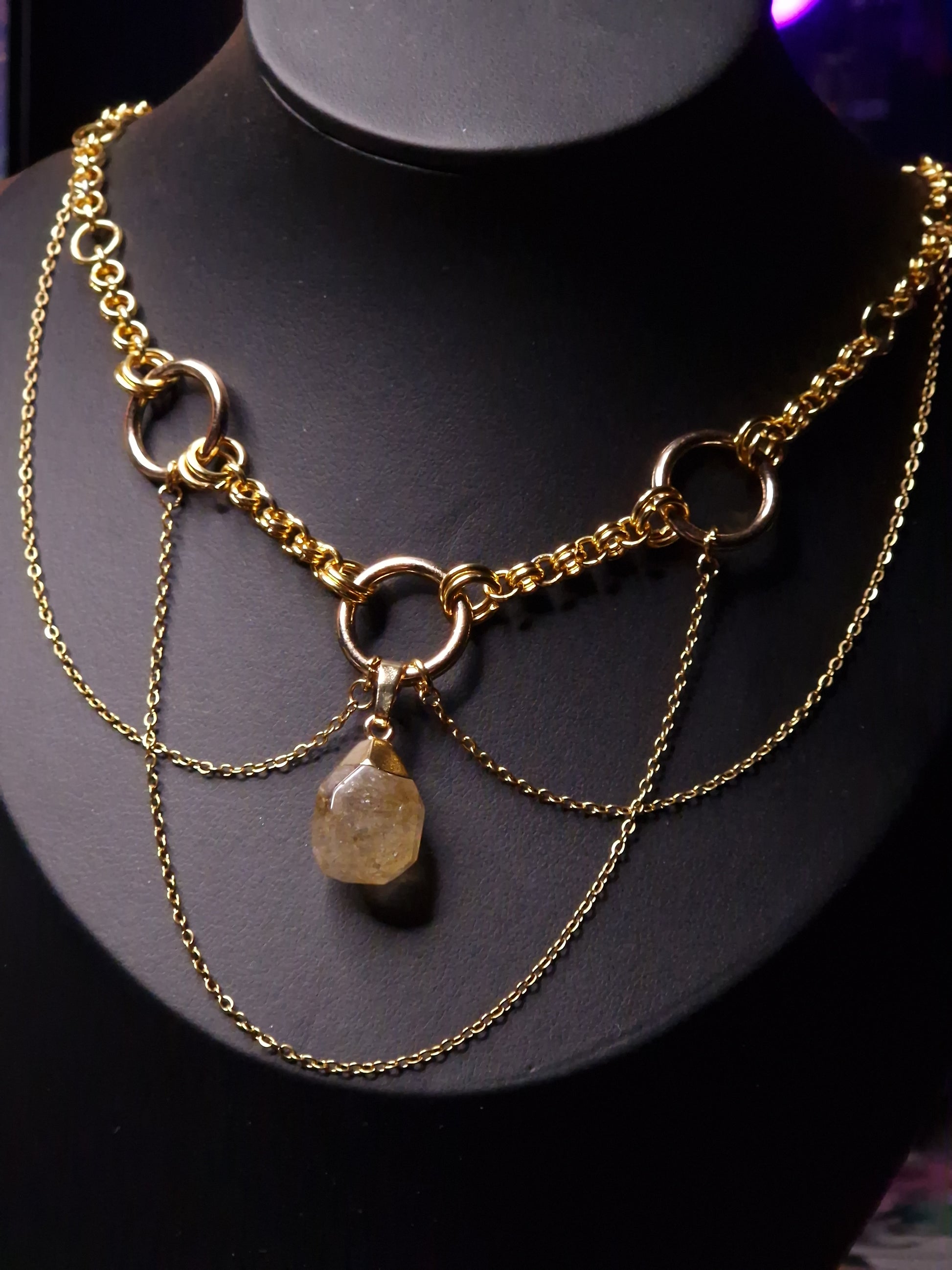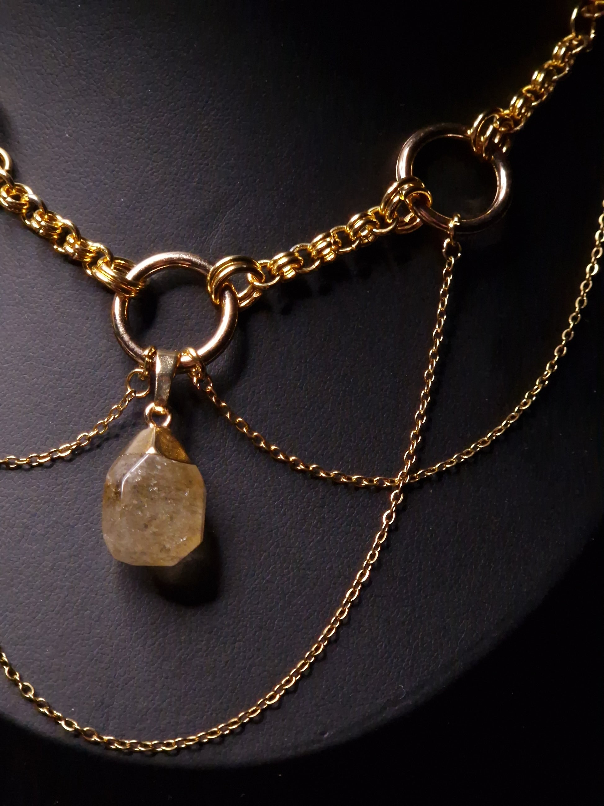 Eine feinmaschige Edelstahlkette, ein paar Ringe und einem Edelstein Anhänger