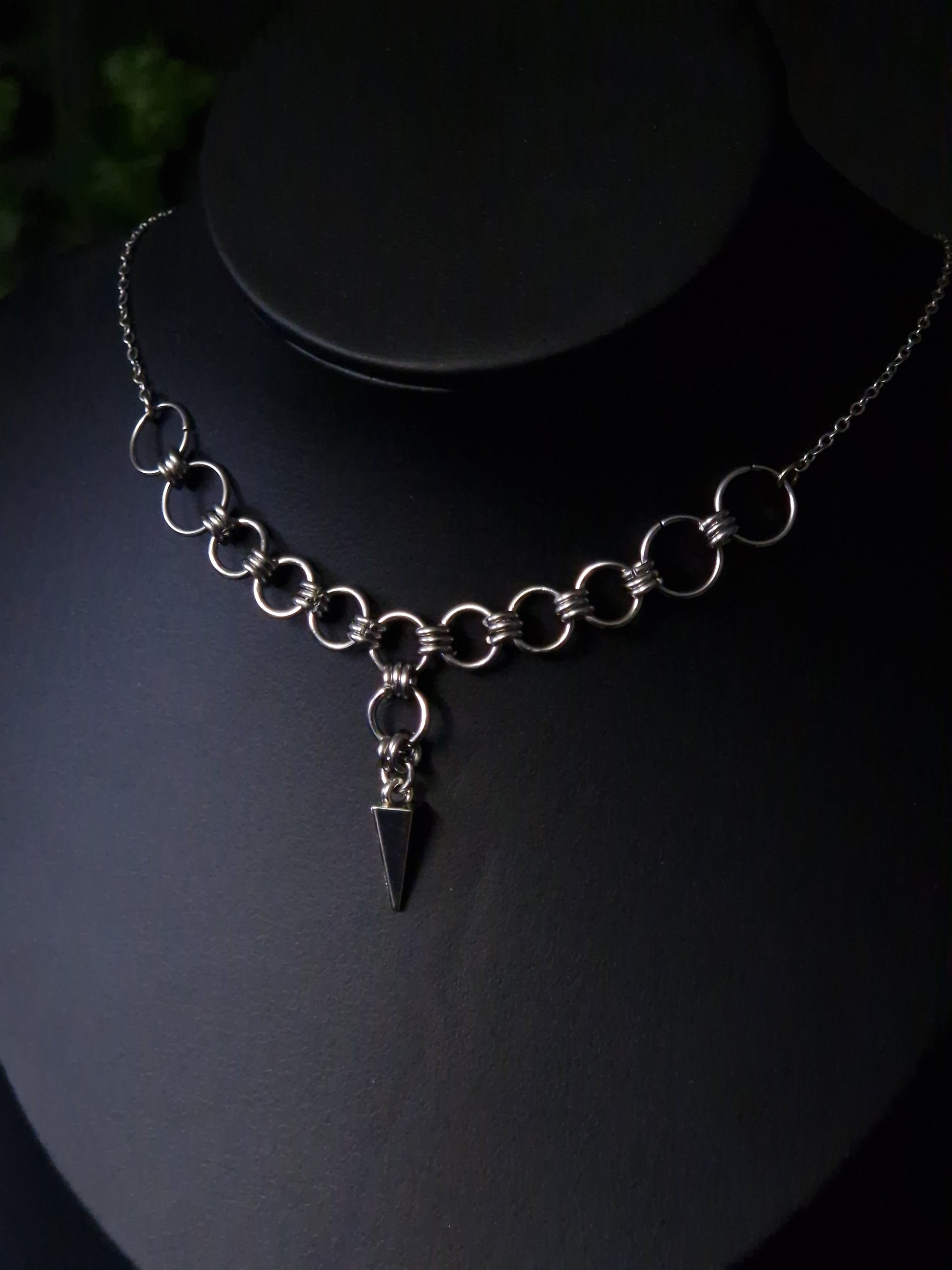 Die Chainmaille Spike Kette in Silber vereint die rohe Ästhetik mittelalterlicher Rüstung mit modernem Spirit. Feines Kettengeflecht trifft auf markante Spikes und wird so zum Statement für Stärke, Selbstbehauptung und stilvolle Rebellion.