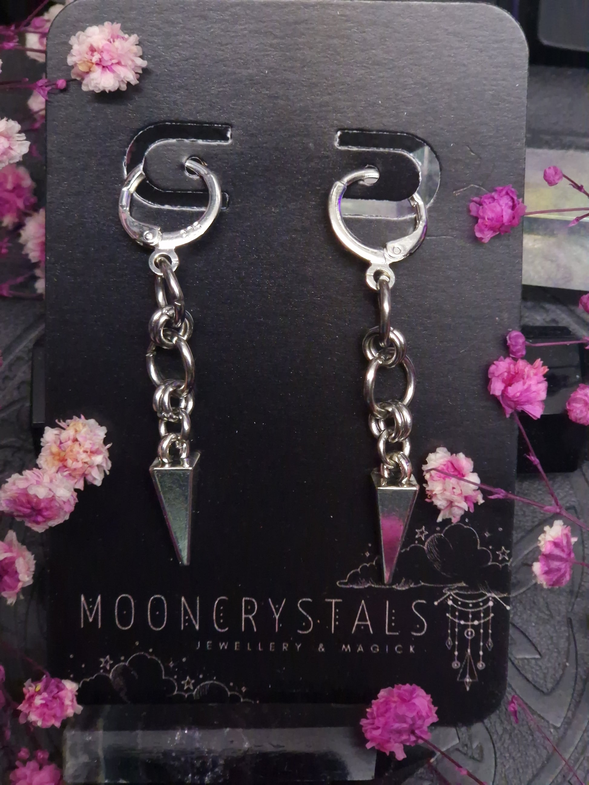 Stark & detailreich – Inspiriert von alter Kettenrüstung, stehen diese Ohrringe für Schutz, Stärke und Stil. Die silberne Oberfläche verleiht dem rauen Look eine kühle, kraftvolle Aura – perfekt für alle, die Klarheit und Power ausstrahlen wollen.