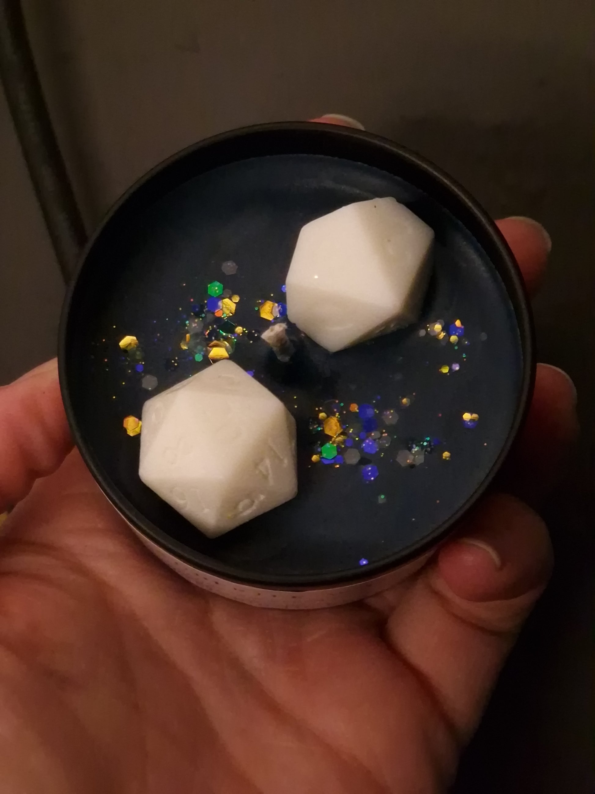 • 2 aus Wachs bestehende Würfel auf der Kerze (random)