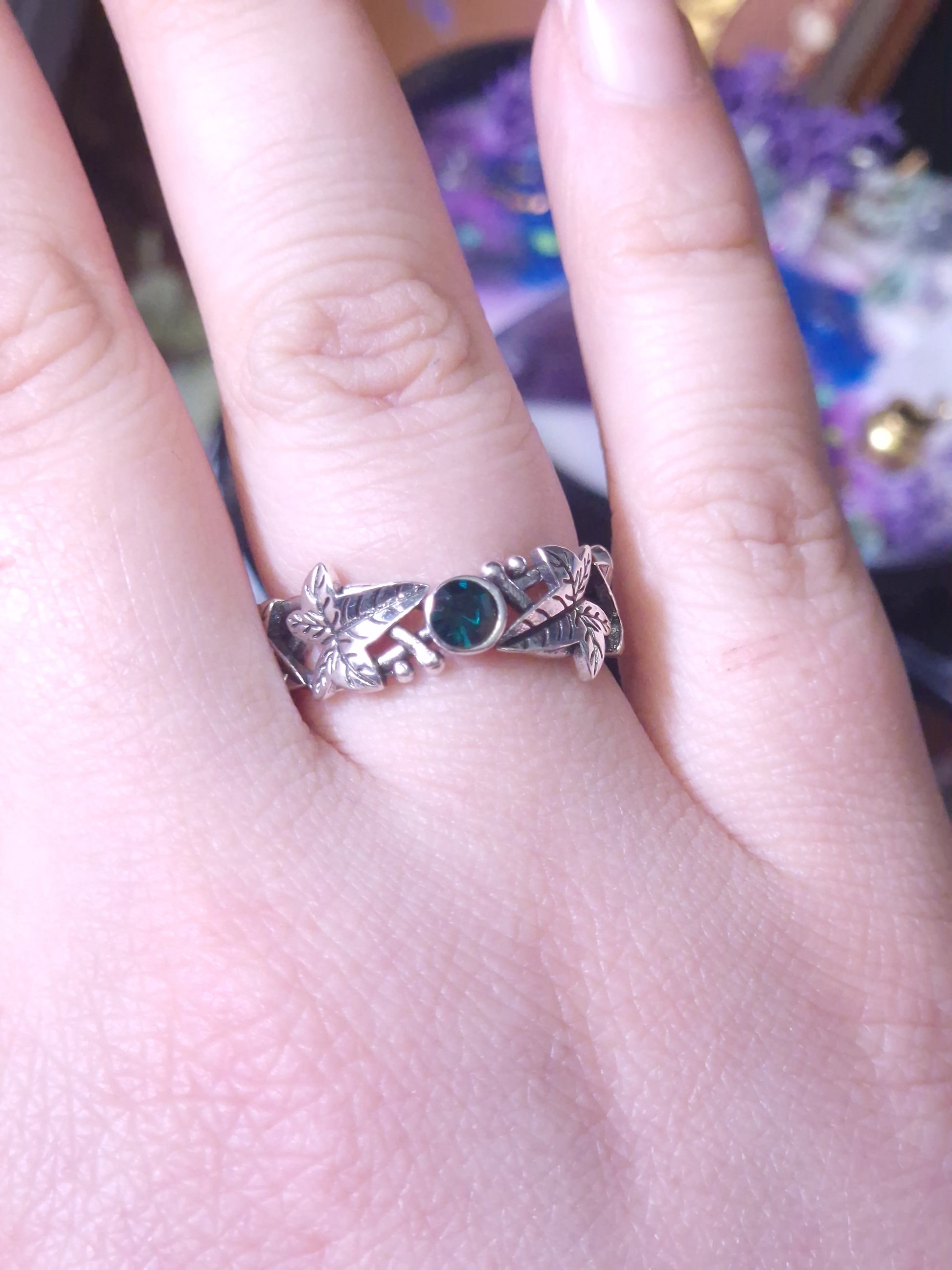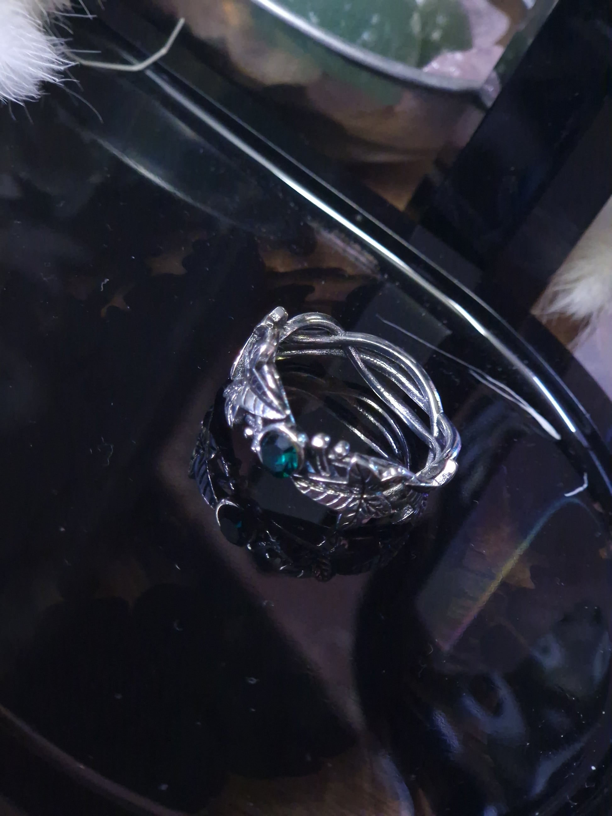 Ein Hauch verwunschener Waldmagie – dieser Ring verbindet filigranen Efeu mit dem funkelnden Glanz eines grünen Zirkons. Die zarte Rankengestaltung umschließt deinen Finger wie ein lebendiges Gedicht aus Blättern und Licht.