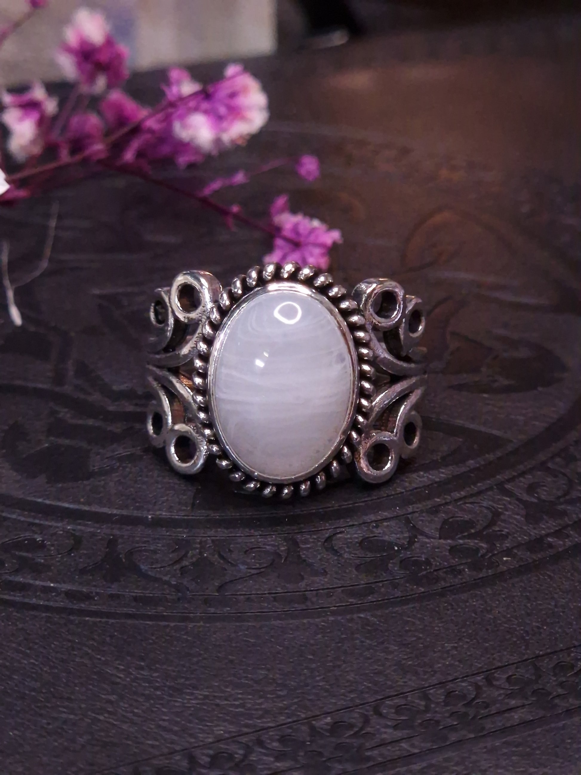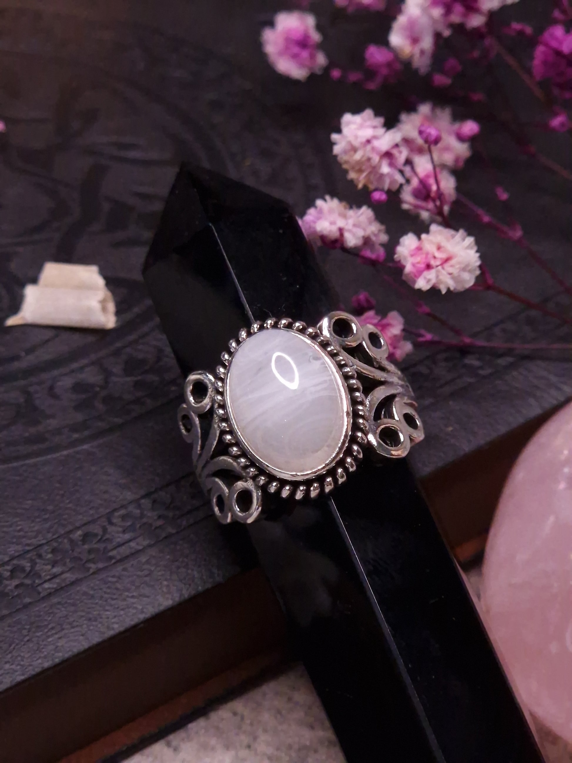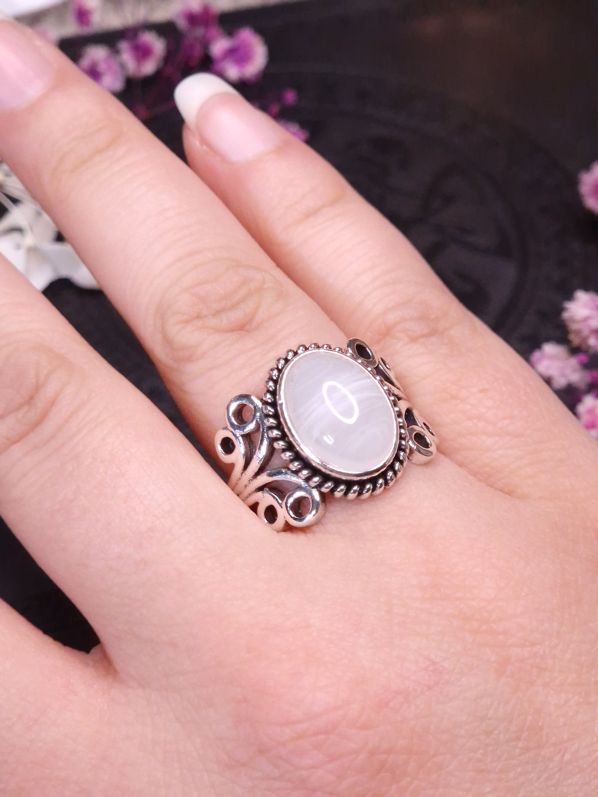 Zierlich geschwungener Ring mit ovalem Mondstein