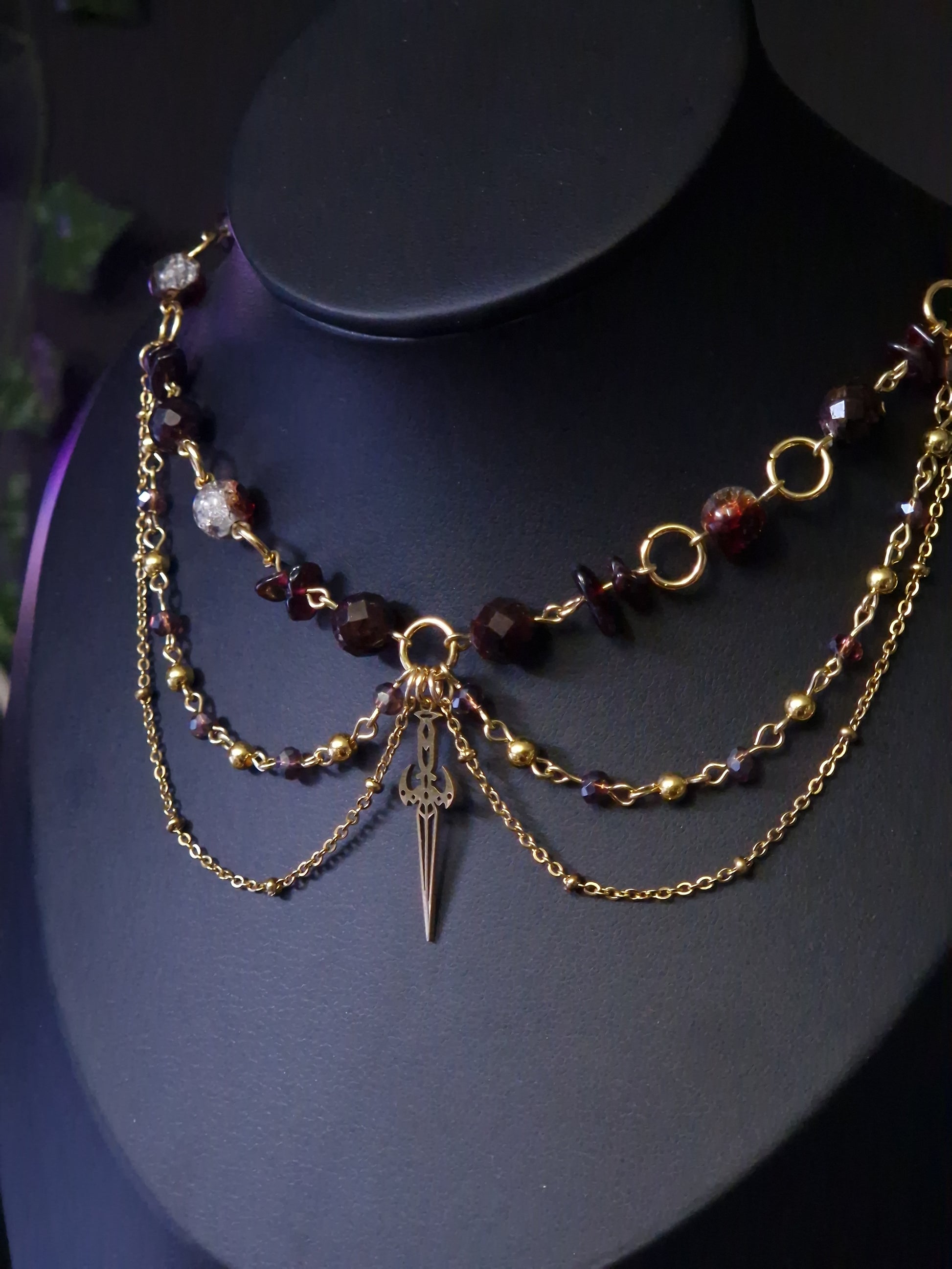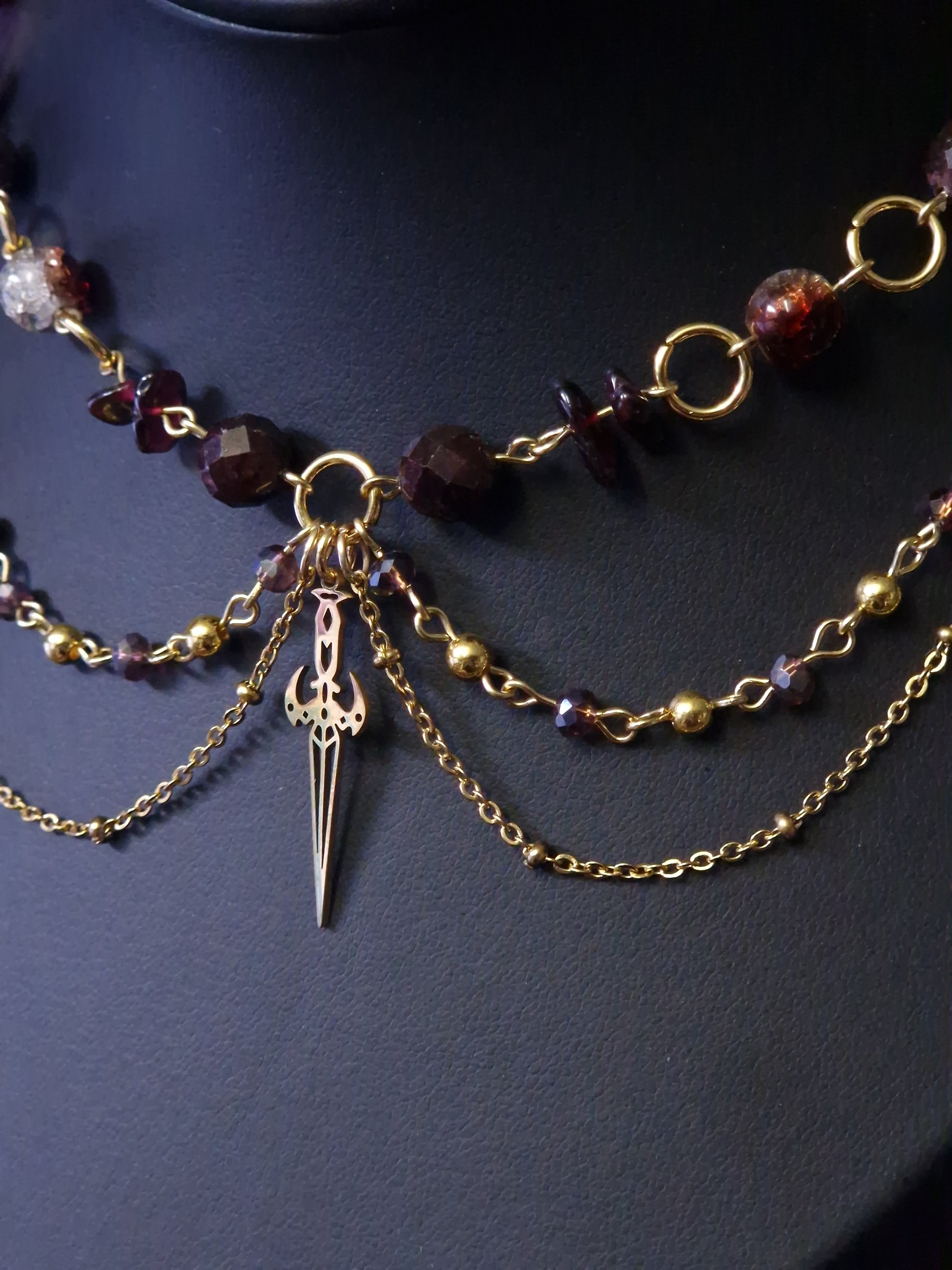 Granat-Collier „Schwert der Leidenschaft“ gold