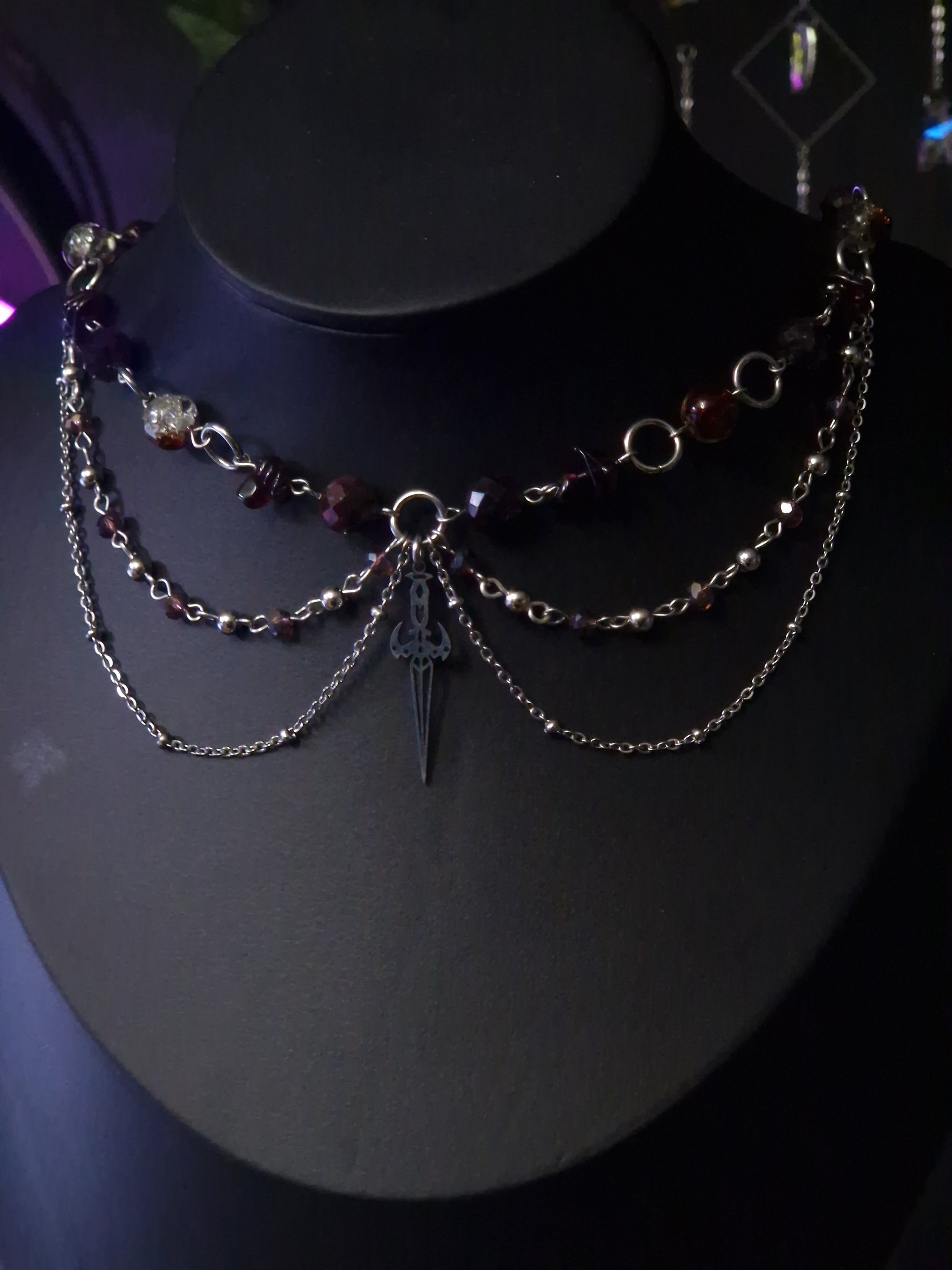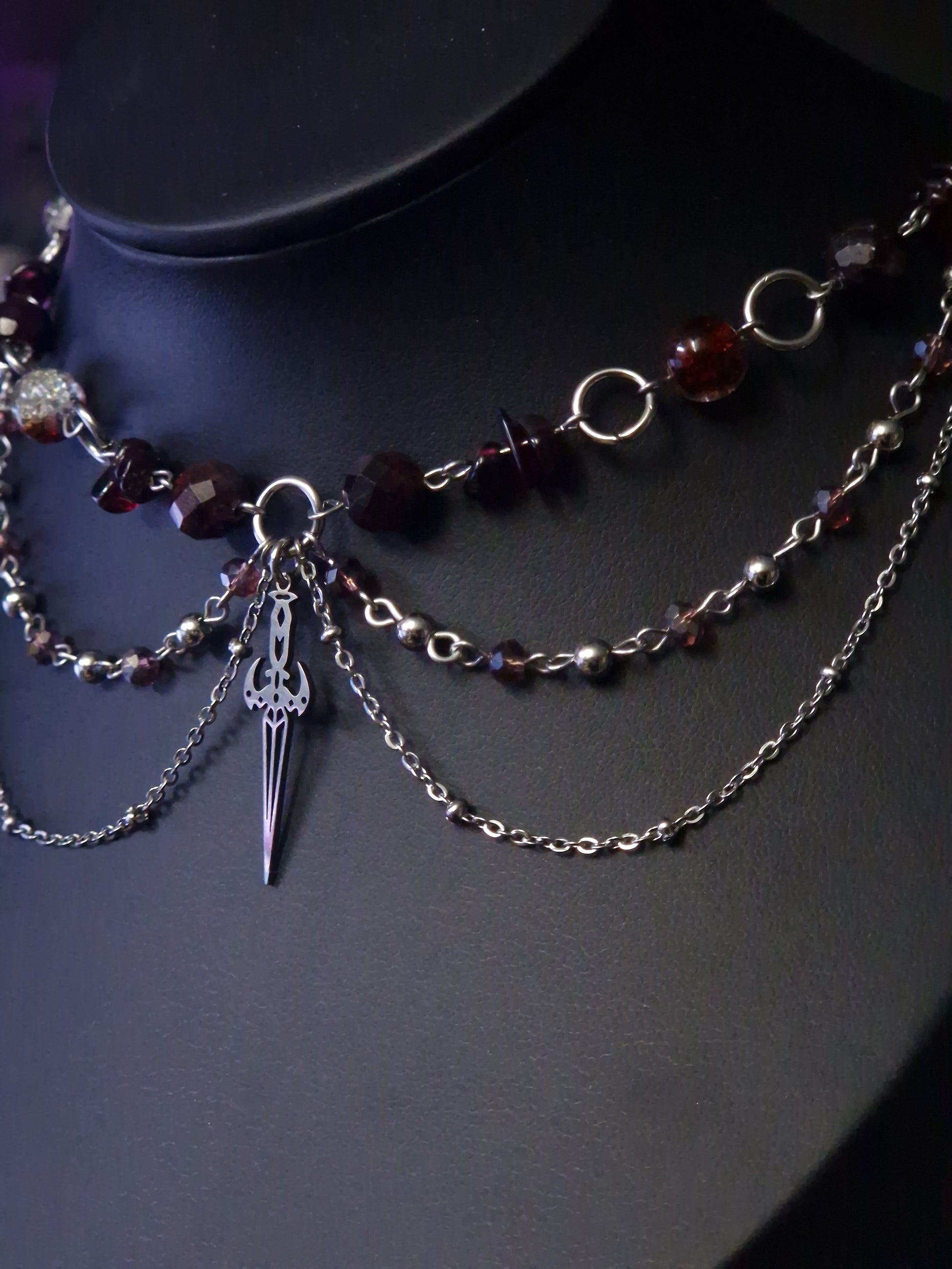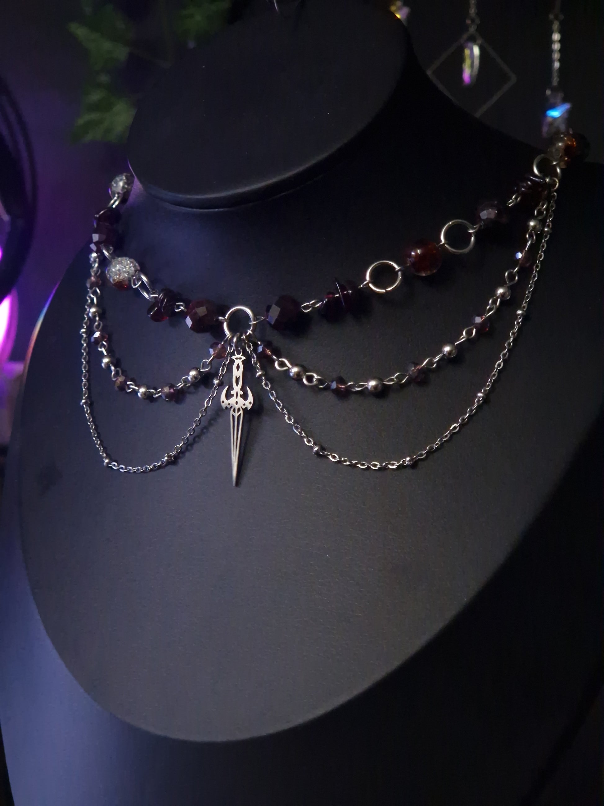 Granat-Collier „Schwert der Leidenschaft“ silber