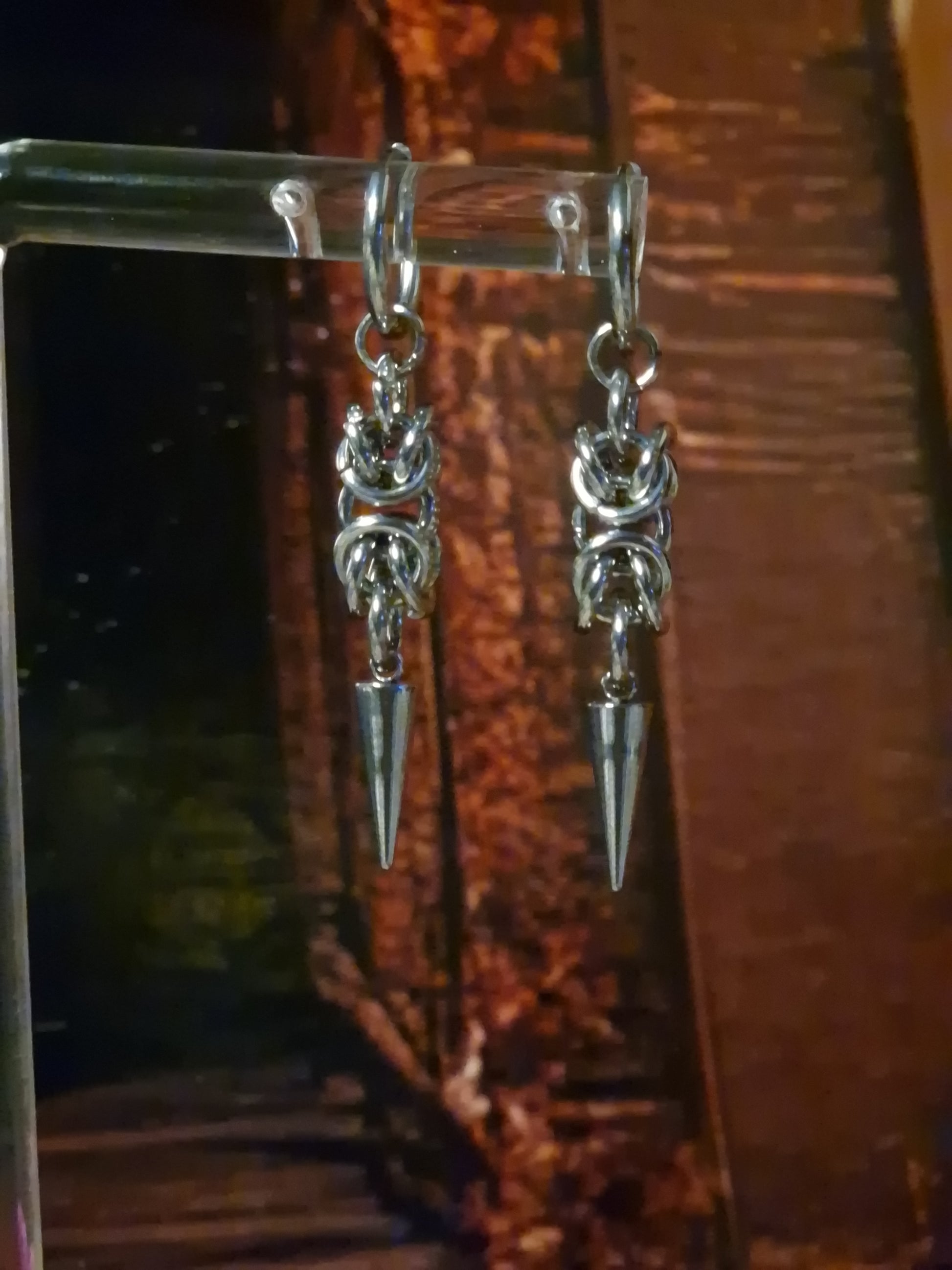 Diese Ohrringe im Chainmaille-Stil verbinden Bewegung und Struktur zu einem kraftvollen Design.