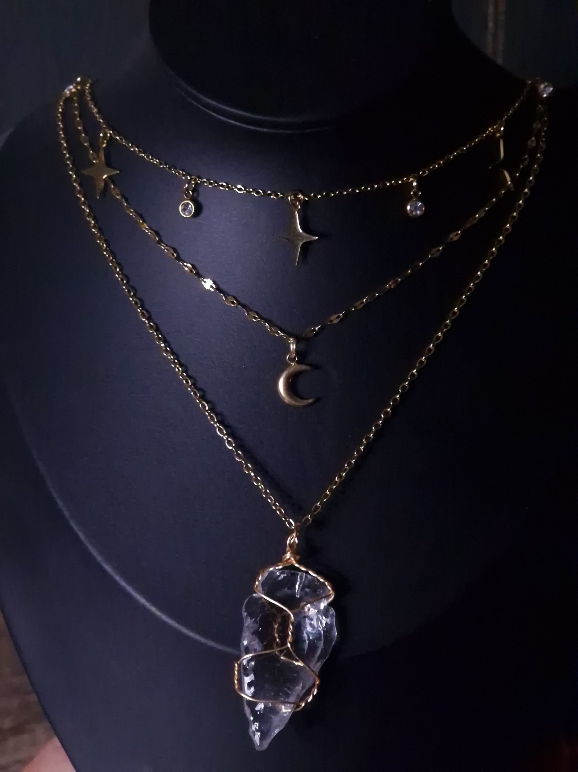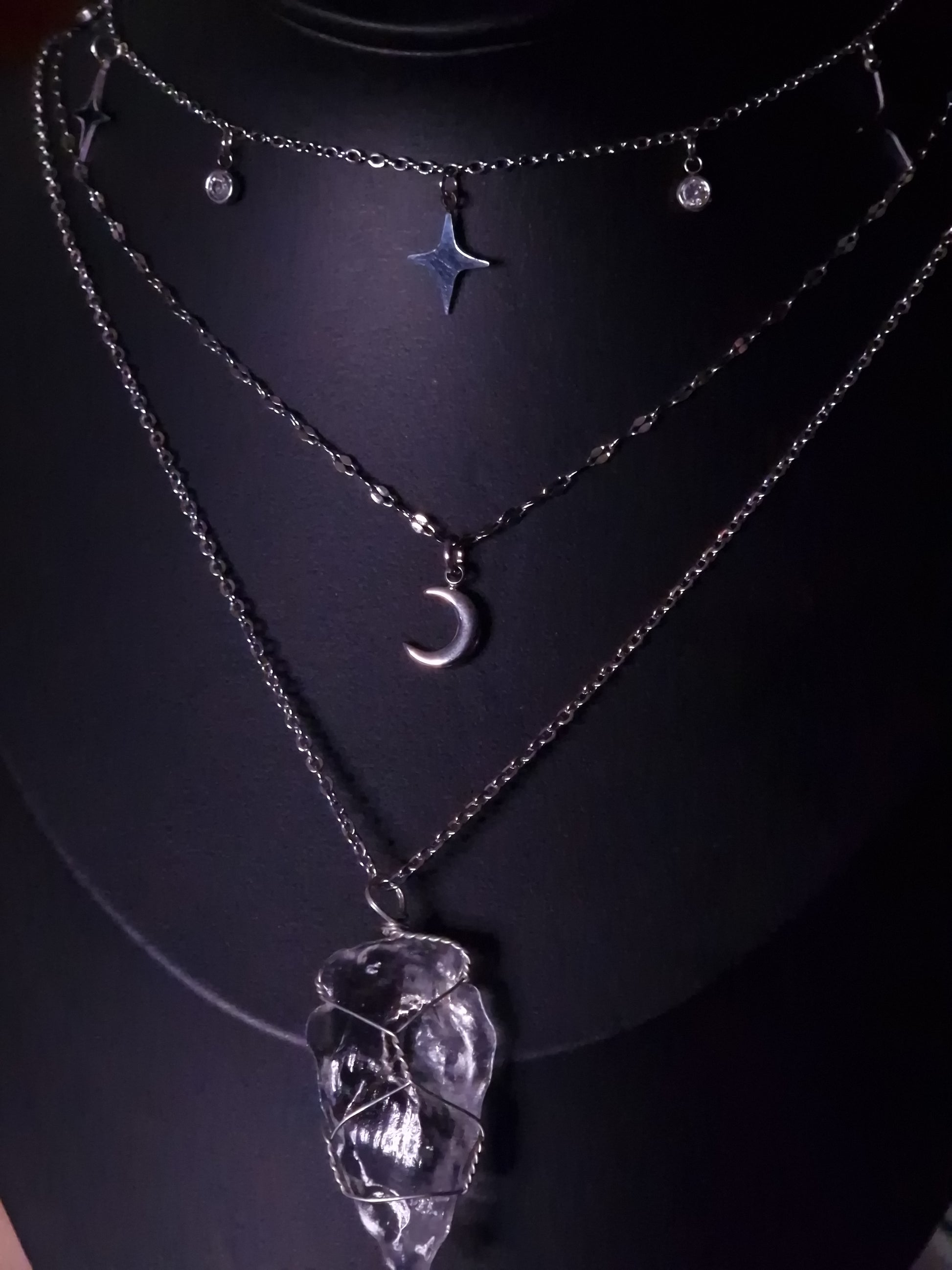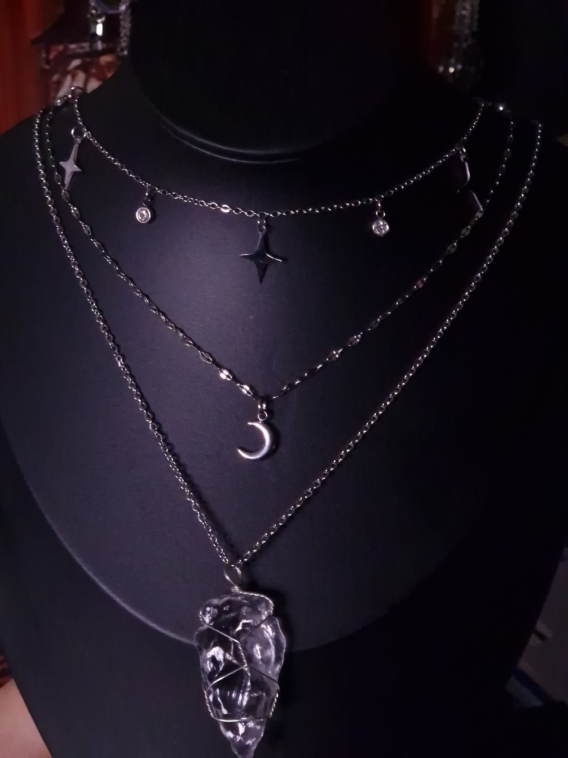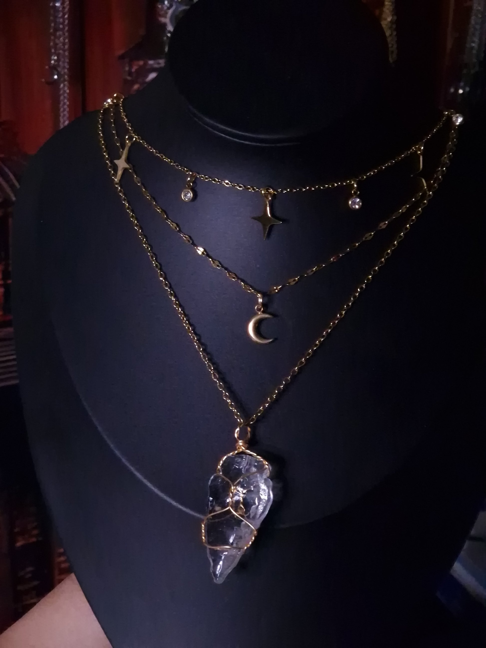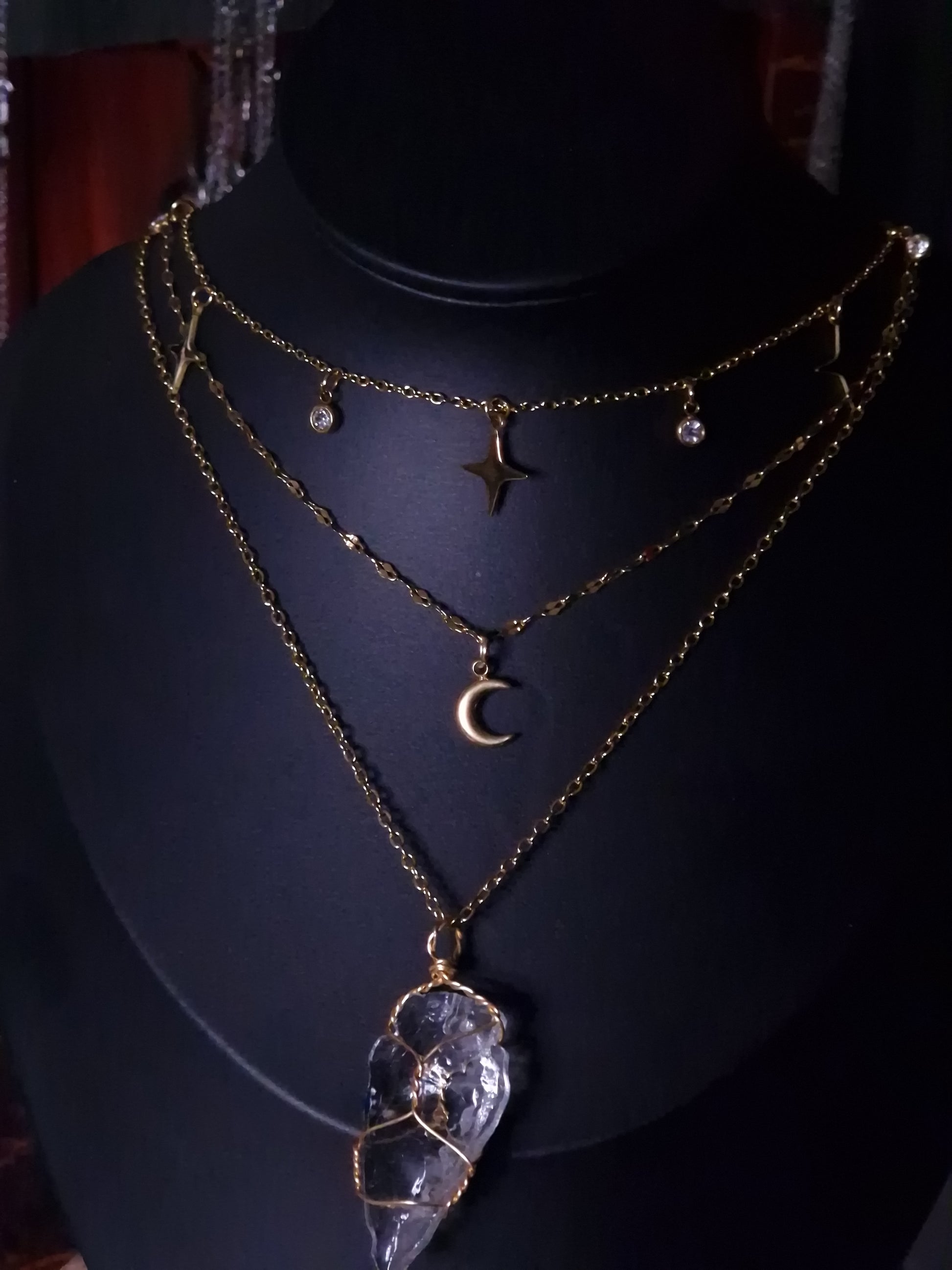 Trage den *Kristallpfeil* als Talisman deiner inneren Stärke – als Erinnerung, dass selbst aus Chaos Schönheit entsteht. Ob über einem einfachen Kleid, als Layer mit Monden & Sternen oder als kraftvolles Ritualamulett: Dieses Schmuckstück verbindet dich mit den Kräften der Elemente und deiner eigenen Magie.