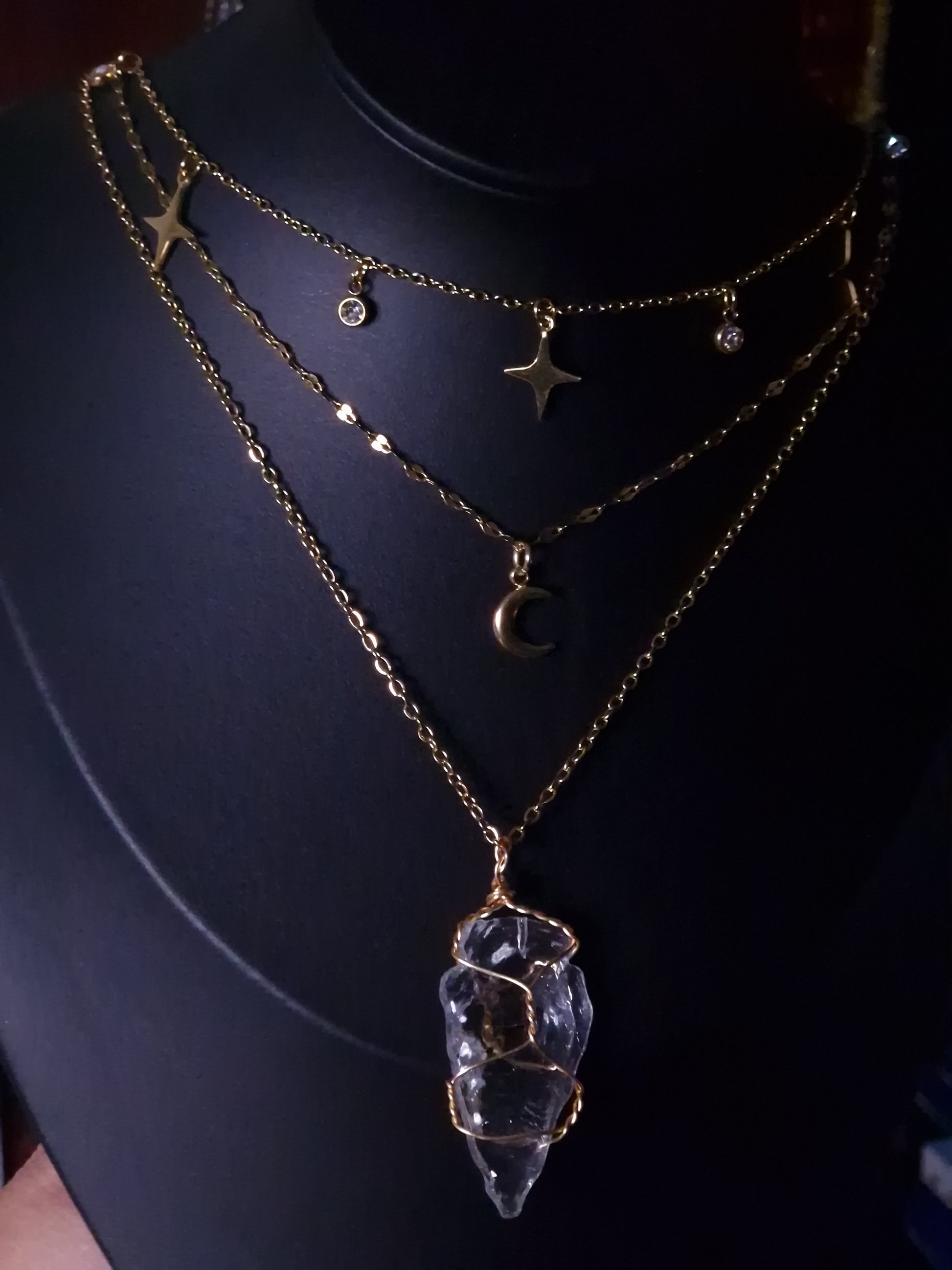 Trage den *Kristallpfeil* als Talisman deiner inneren Stärke – als Erinnerung, dass selbst aus Chaos Schönheit entsteht. Ob über einem einfachen Kleid, als Layer mit Monden & Sternen oder als kraftvolles Ritualamulett: Dieses Schmuckstück verbindet dich mit den Kräften der Elemente und deiner eigenen Magie.
