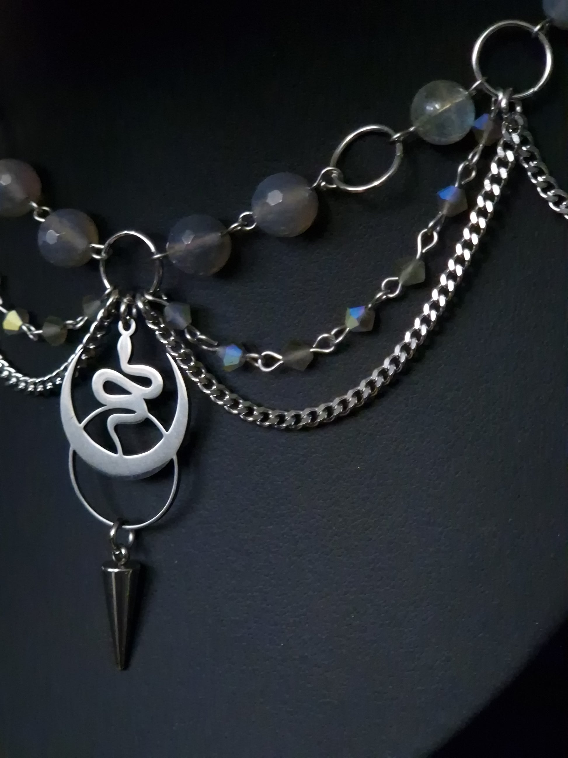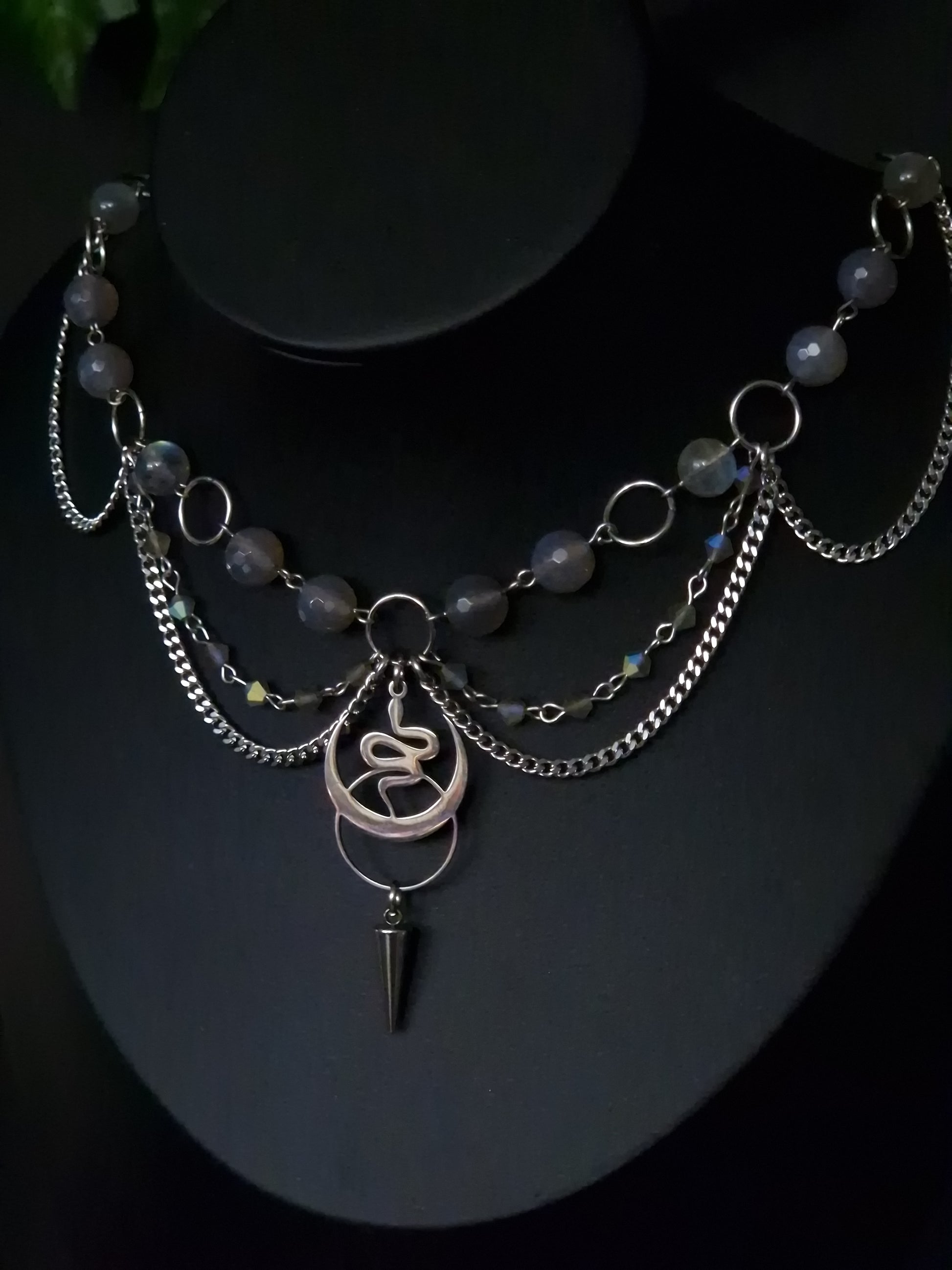 „Moonlit Veil“ ist mehr als Schmuck – es ist ein Amulett für all jene, die Schönheit mit Bedeutung verbinden möchten. Perfekt für magische Rituale, mystische Outfits oder einfach, um ein Stück geheimnisvollen Sternenstaub im Alltag bei dir zu tragen.