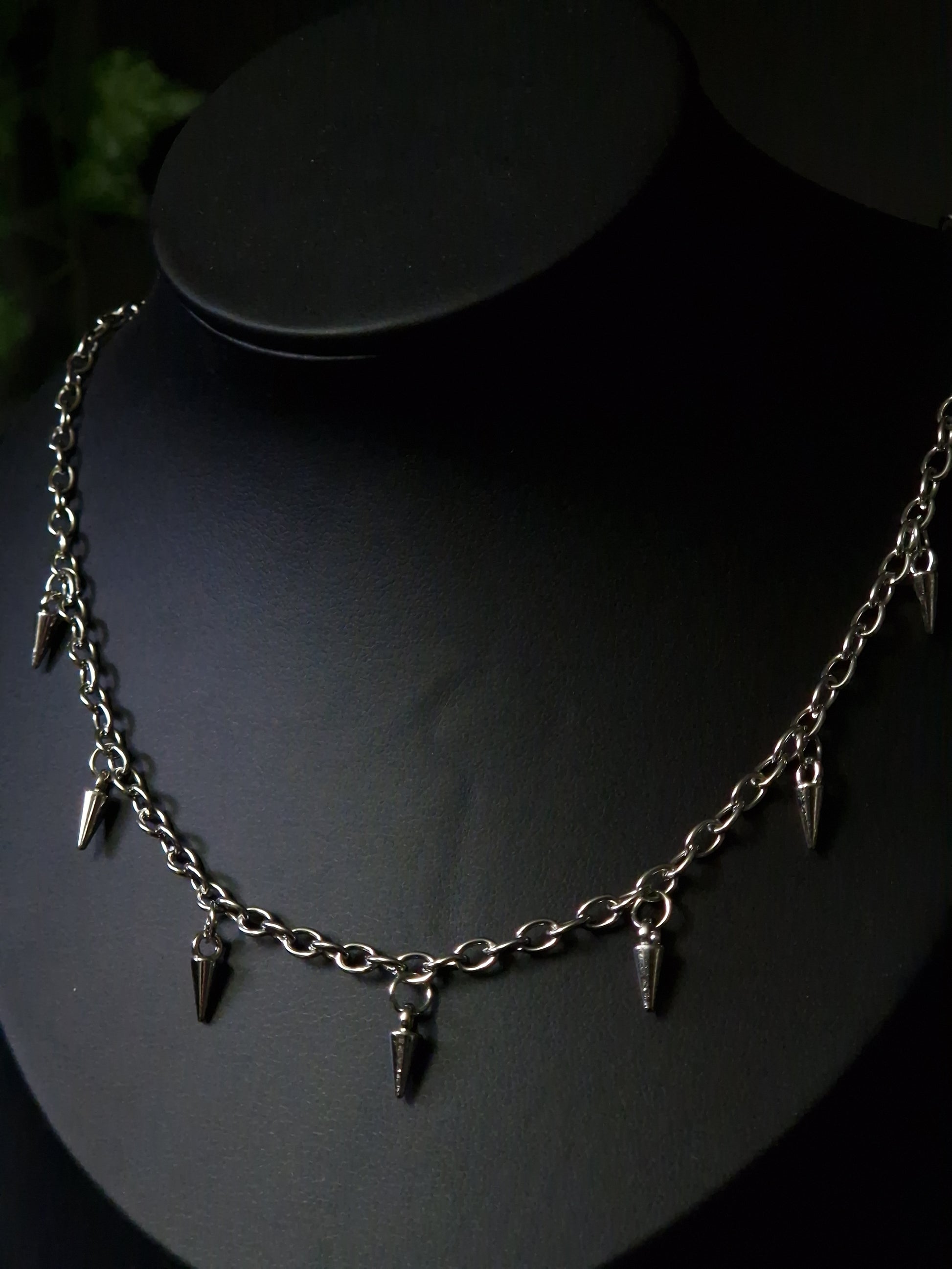 Edelstahl steht für Klarheit, Beständigkeit und zeitlose Coolness. Die Spikes – zart genug, um nicht zu dominieren, aber kantig genug, um nicht zu übersehen – verleihen der Kette kraftvollen Ausdruck und subtile Verteidigungsenergie.