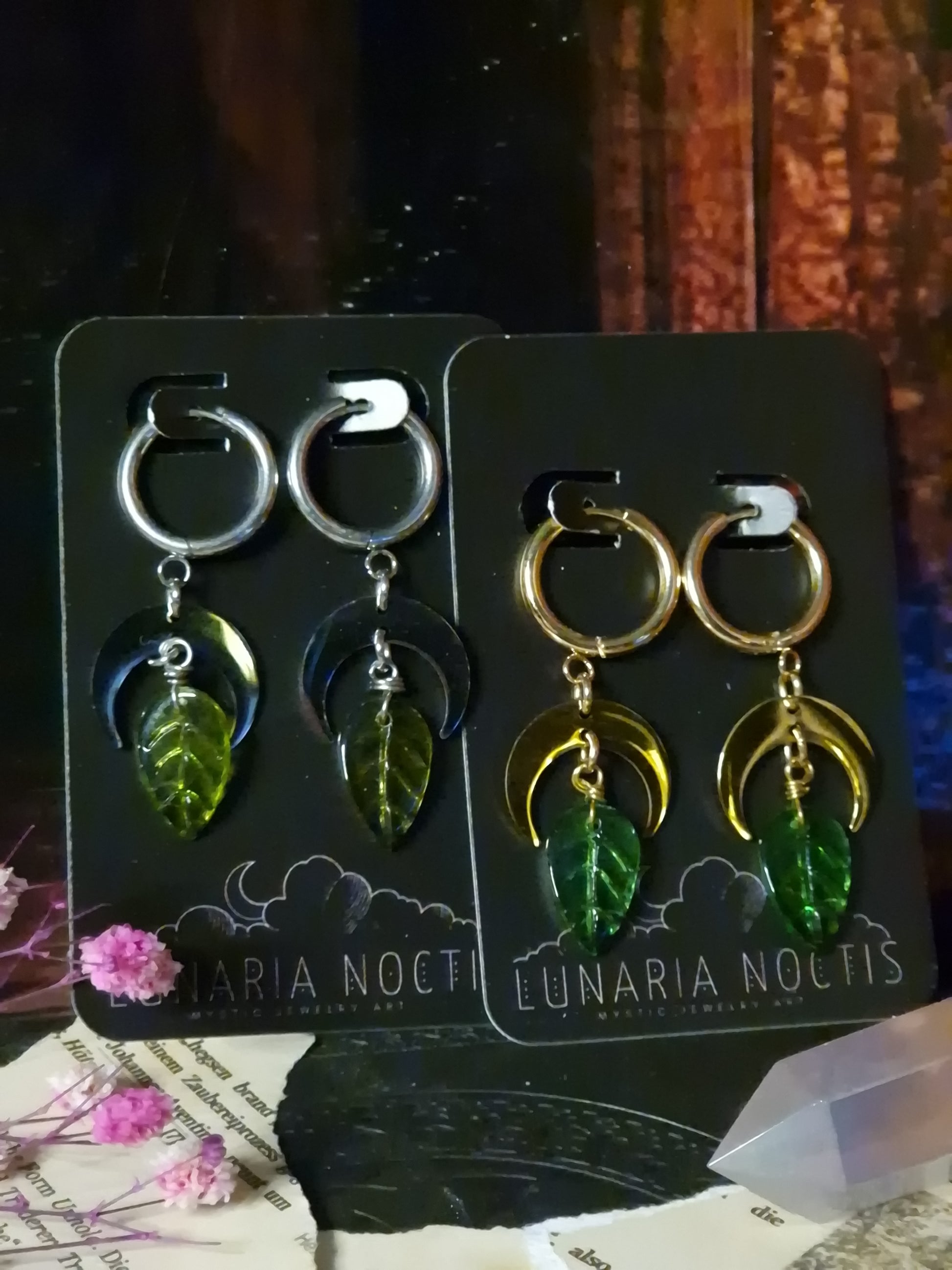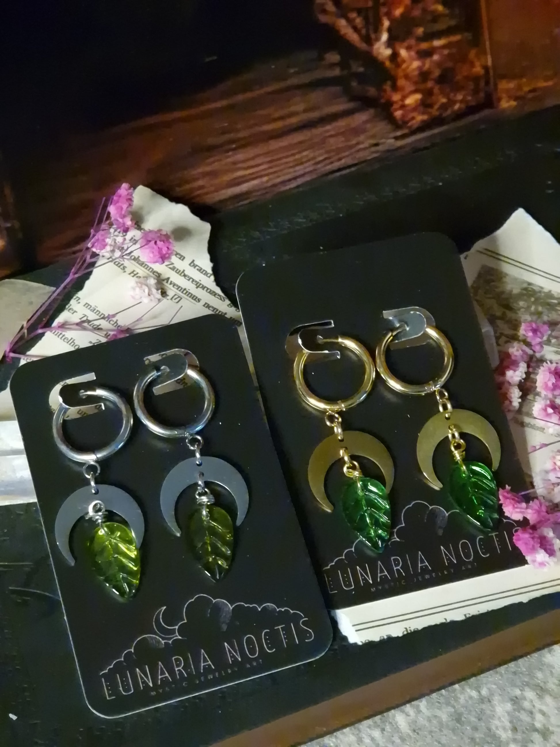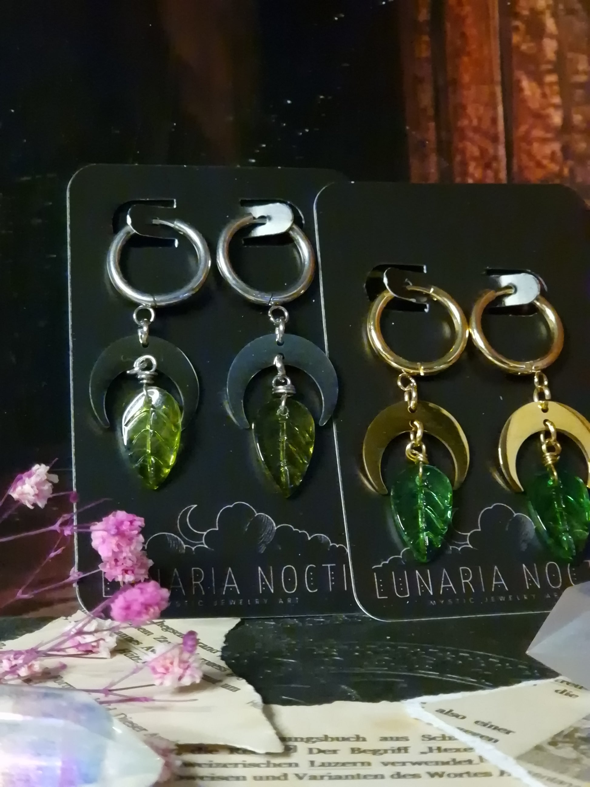 Das fein gearbeitete Acrylblatt schwingt sanft unter der Creole und erinnert an Blätter, die im Mondlicht leise rascheln – erdend, elegant und voller Tiefe.