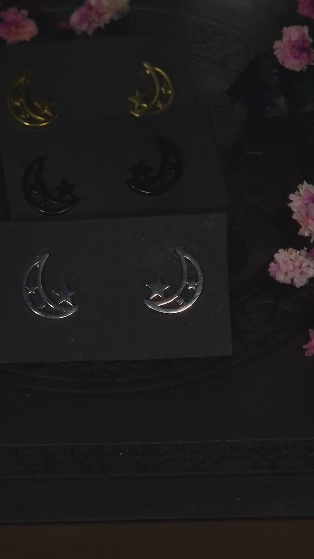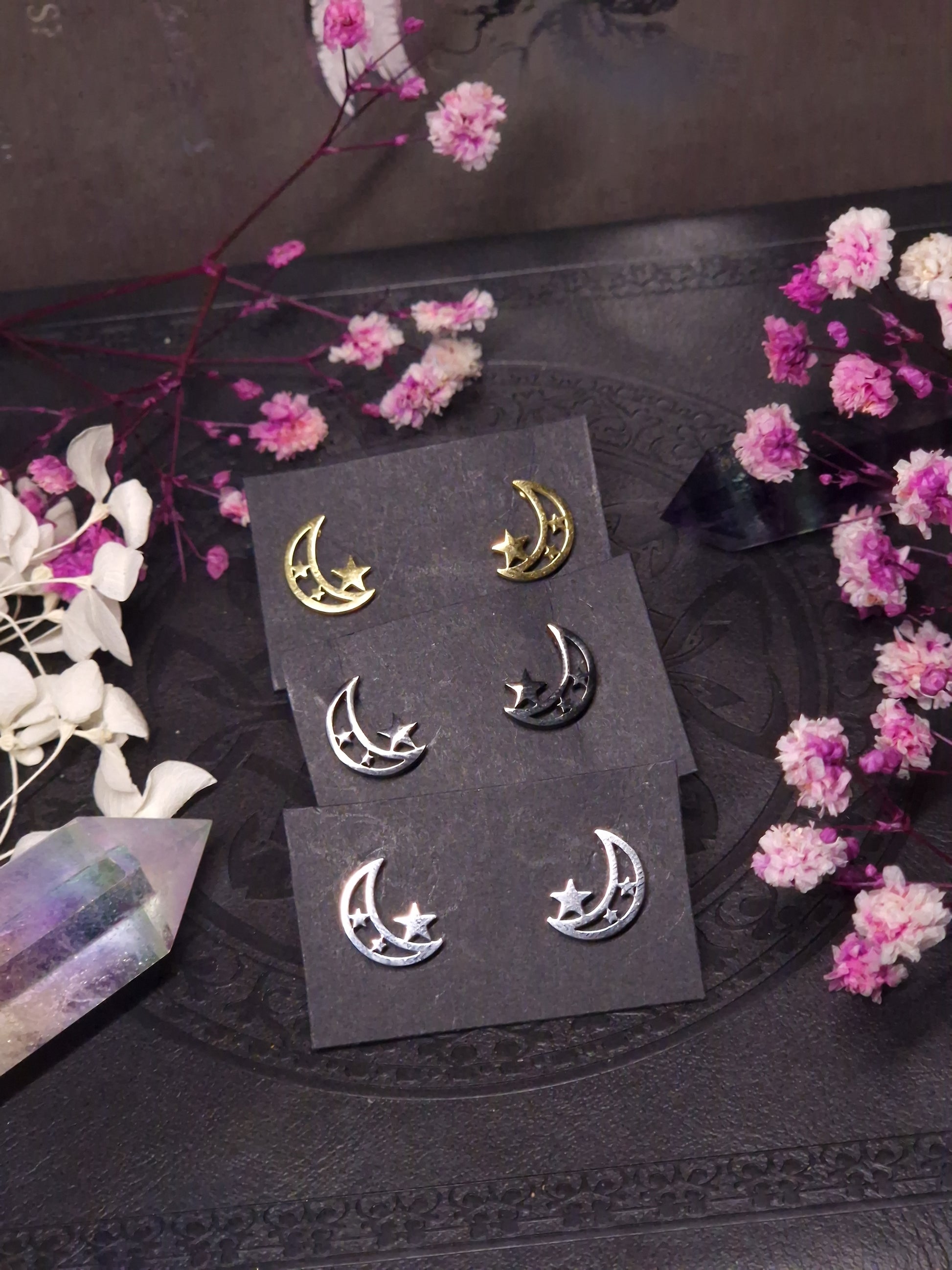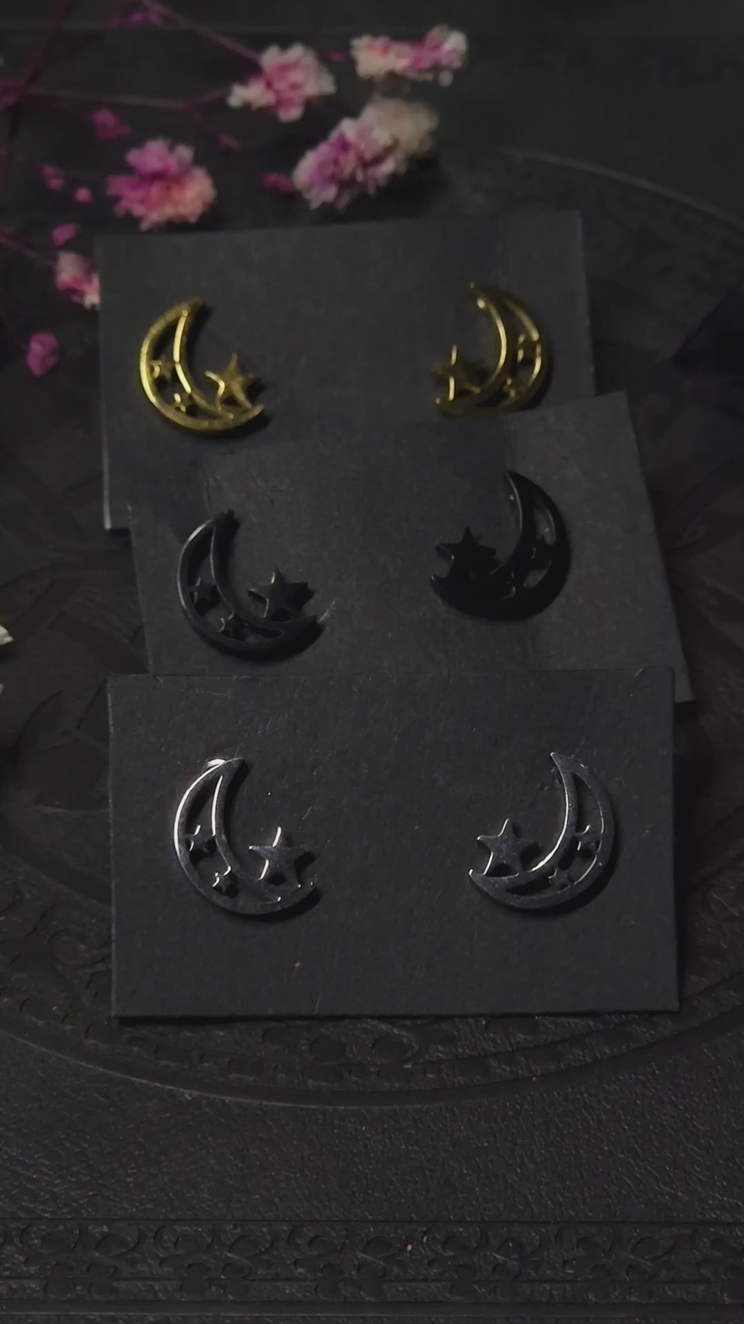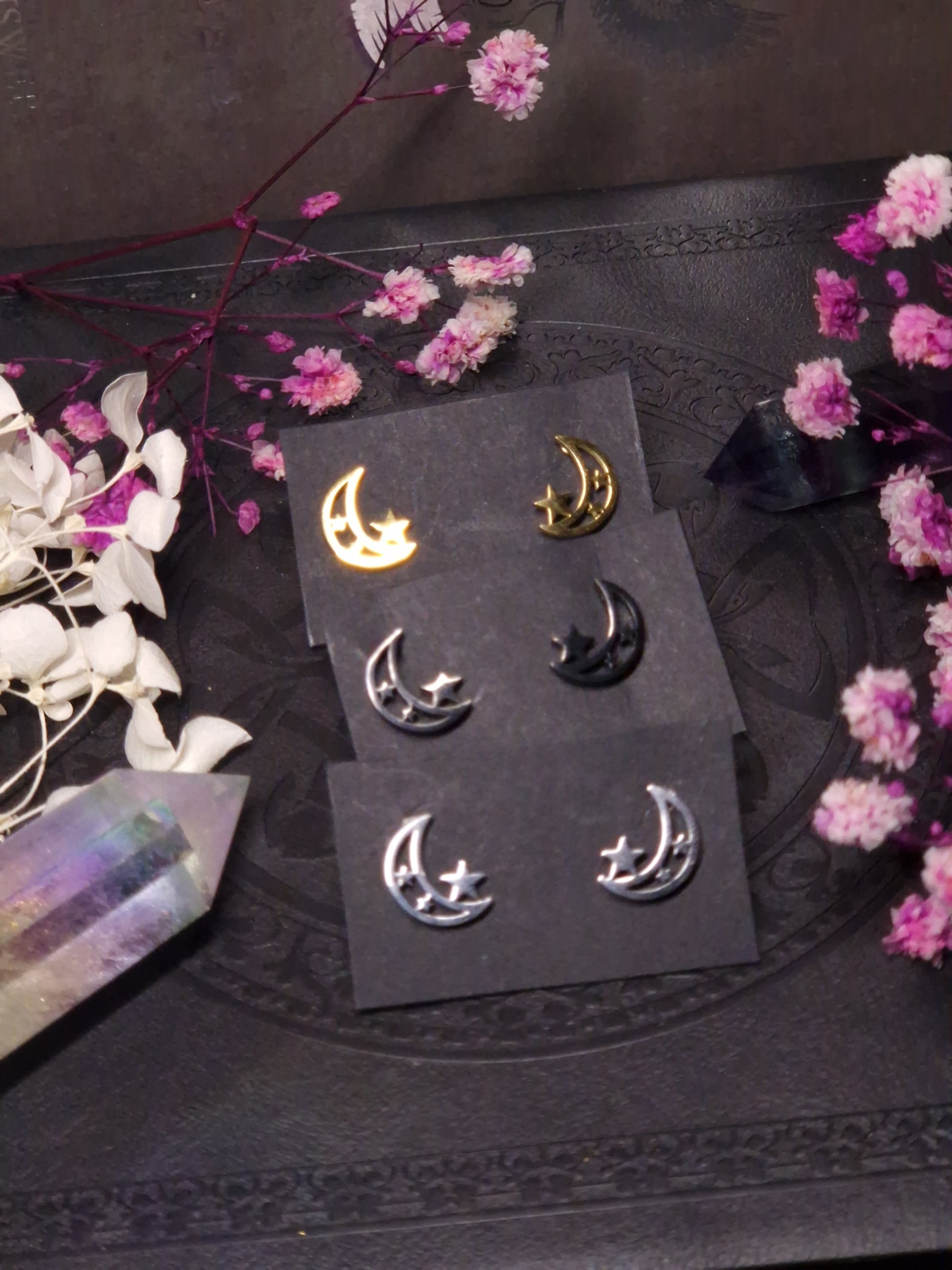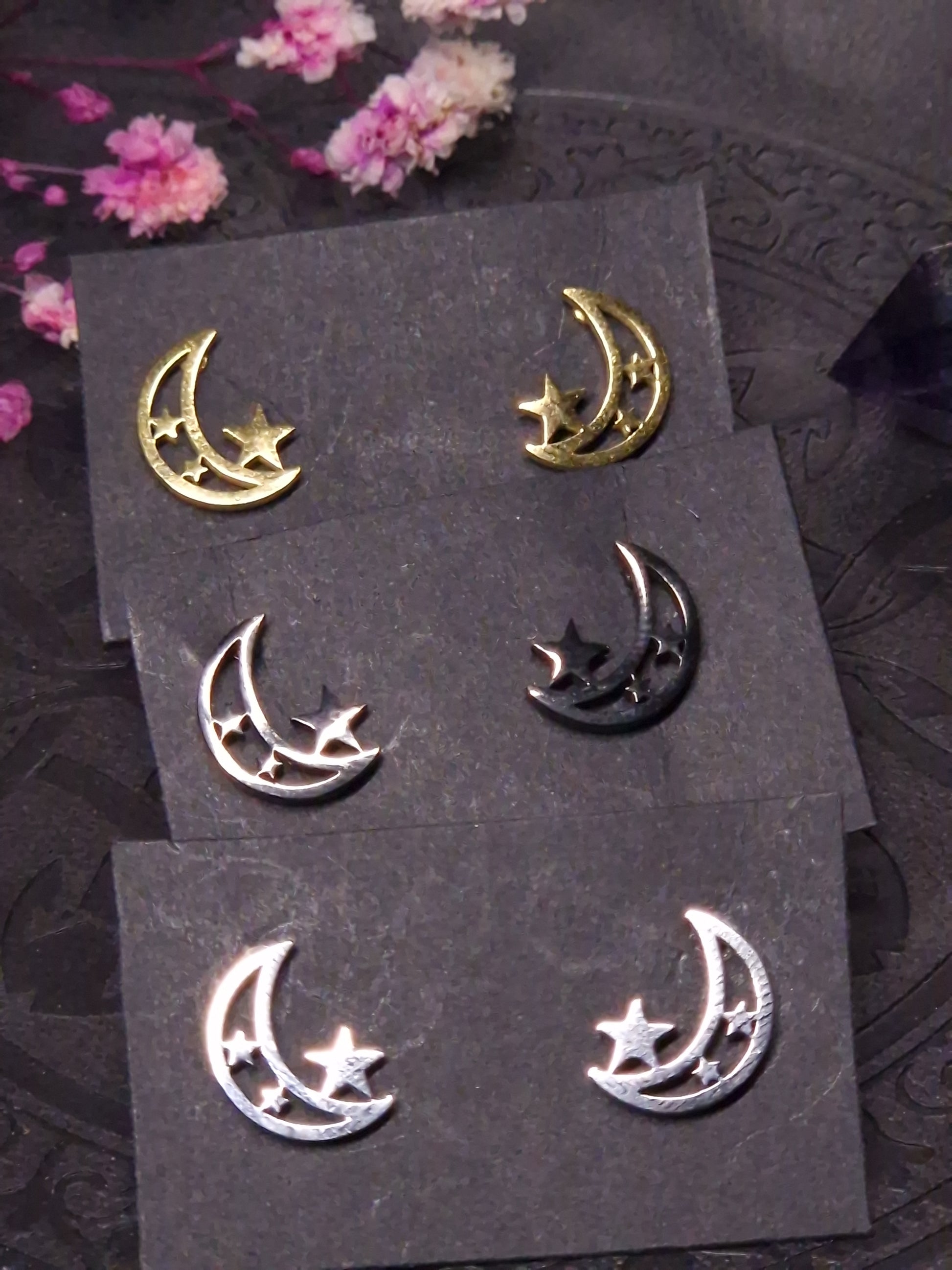 kleine Edelstahl Mond Stern Ohrringe I silber gold schwarz