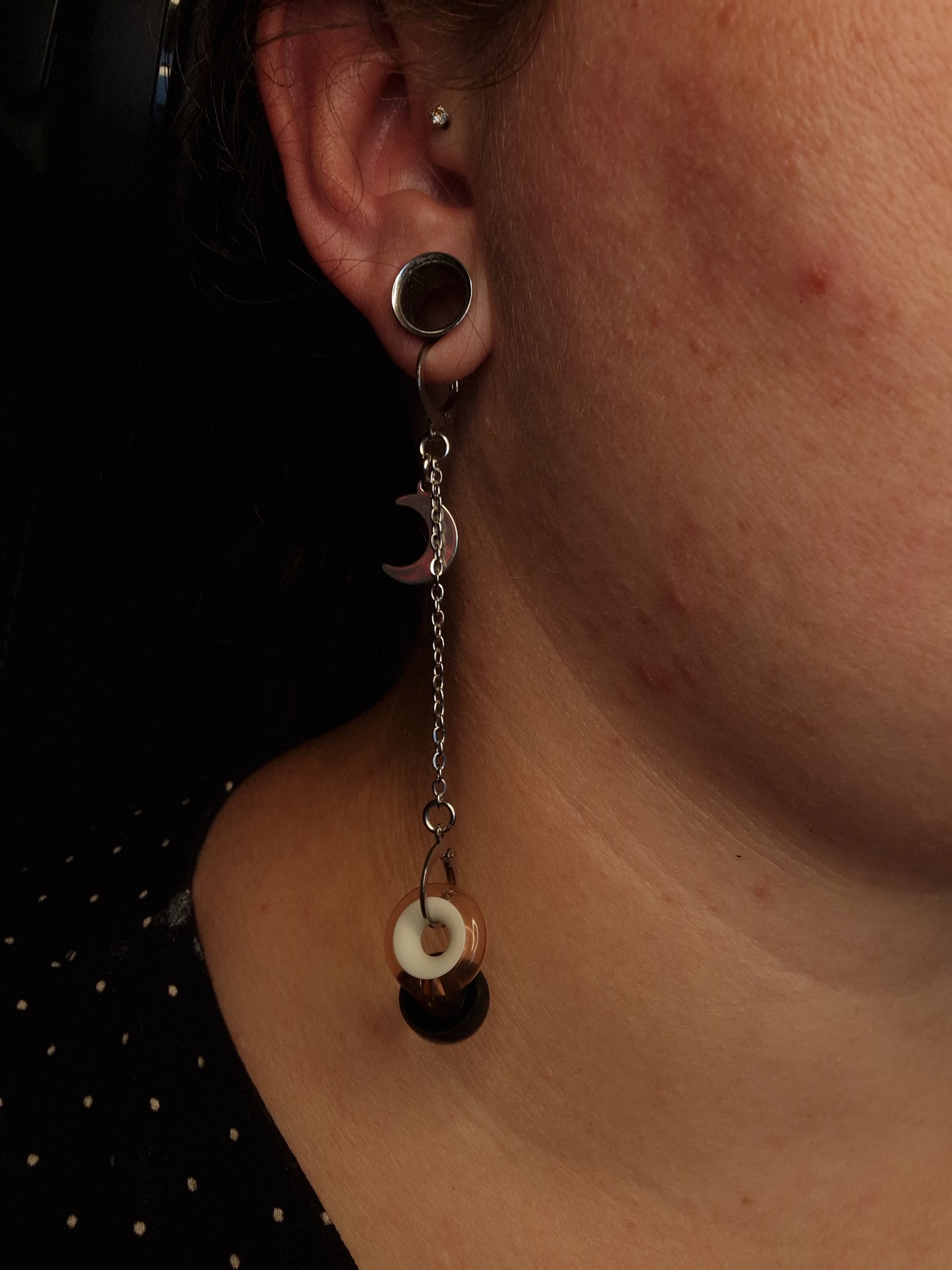 Der Ohrring hält Ihren Loop sicher und stilvoll am Platz – ob im Alltag oder unterwegs. Der anschwingende Halbmond fügt eine poetische Leichtigkeit hinzu und verwandelt praktischen Nutzen in zauberhaftes Statement.