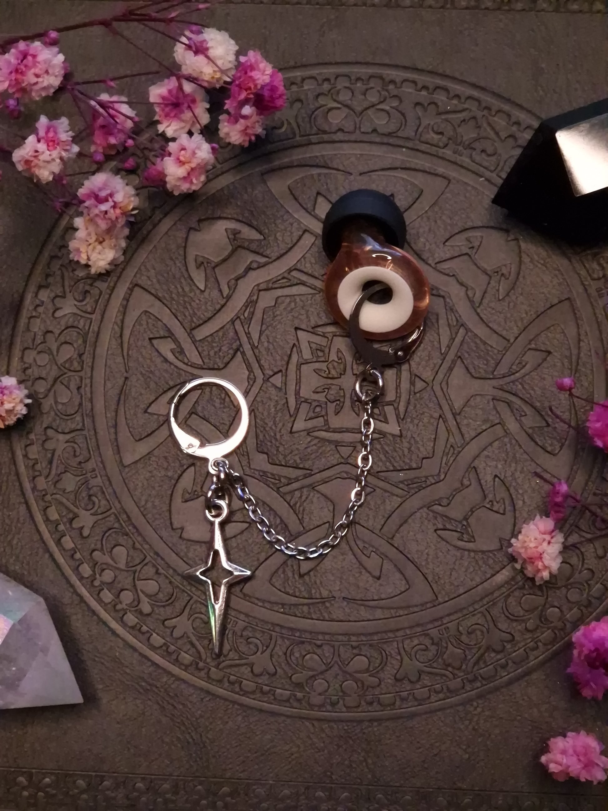Die minimalistische Form sorgt dafür, dass du deinen Loop-Stöpsel dezent befestigen kannst. Die kleine Kette mit Anhänger fällt geschmeidig, ohne zu klappern, und verleiht deinem Styling eine mystische Note.