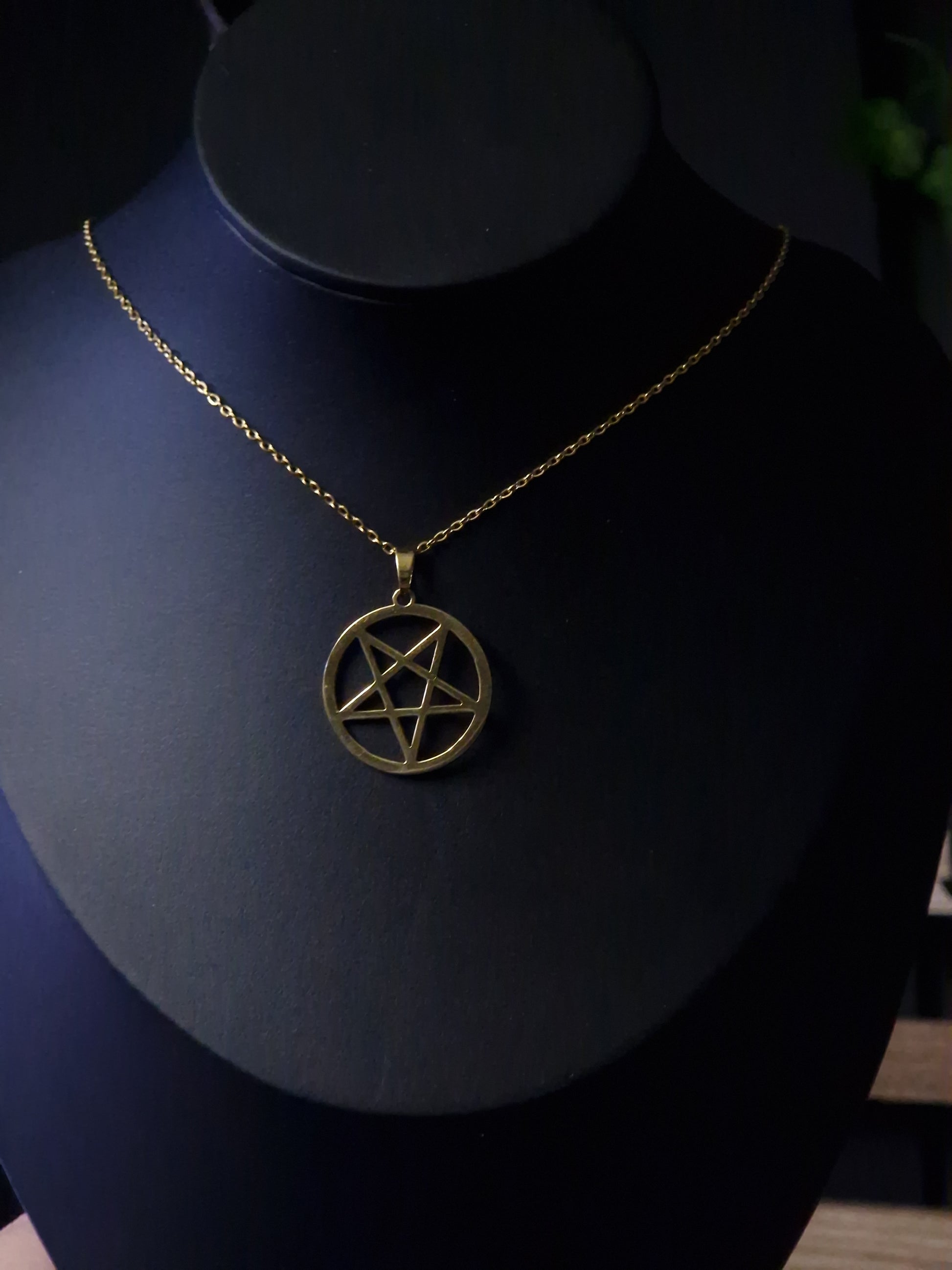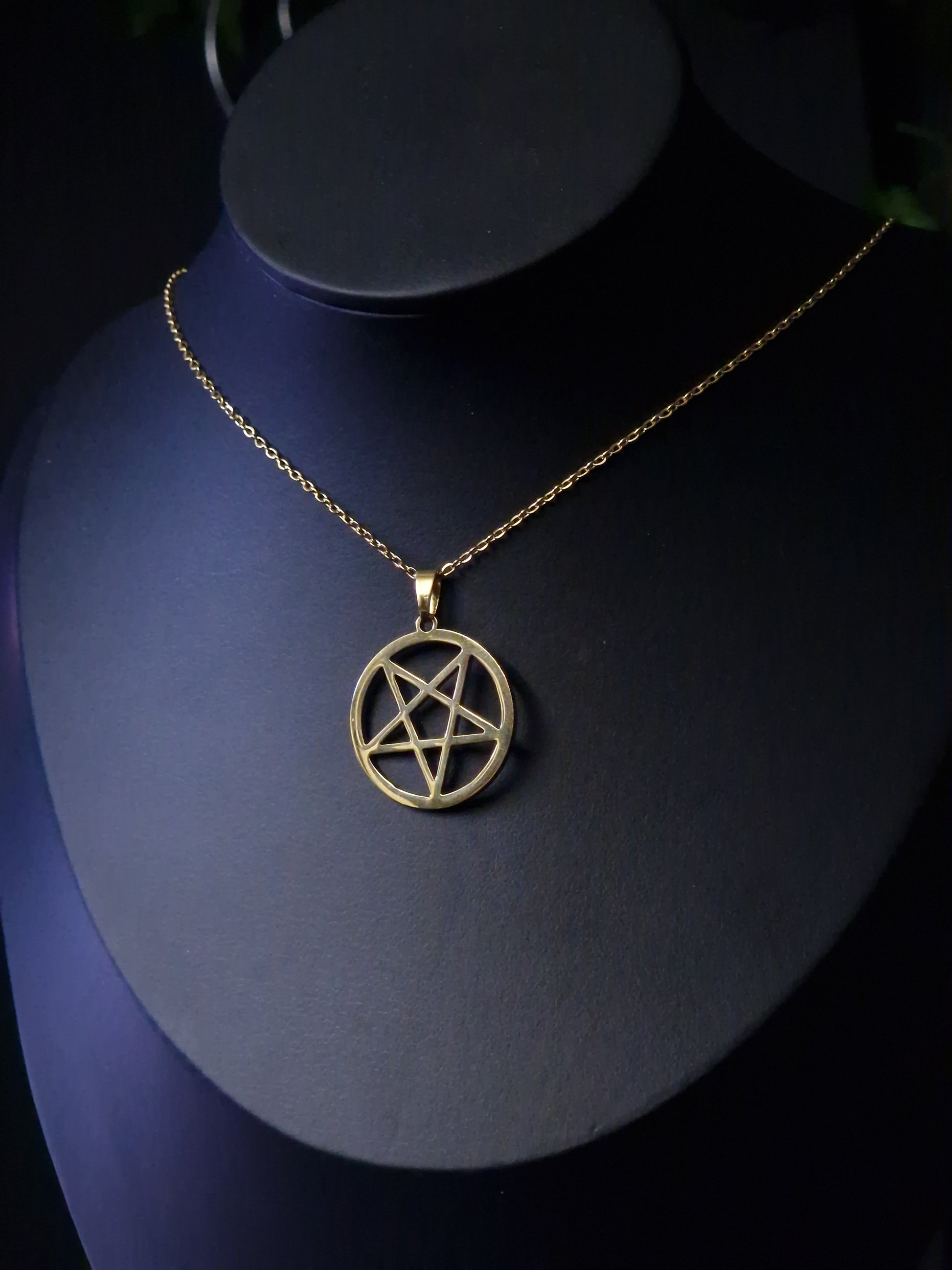 Diese feine Kette mit klassischem Pentakel-Anhänger vereint kraftvolle Symbolik mit zeitloser Eleganz. Das Pentagramm im Kreis steht für Schutz, Balance und die Verbindung der fünf Elemente – Erde, Wasser, Feuer, Luft und Geist.