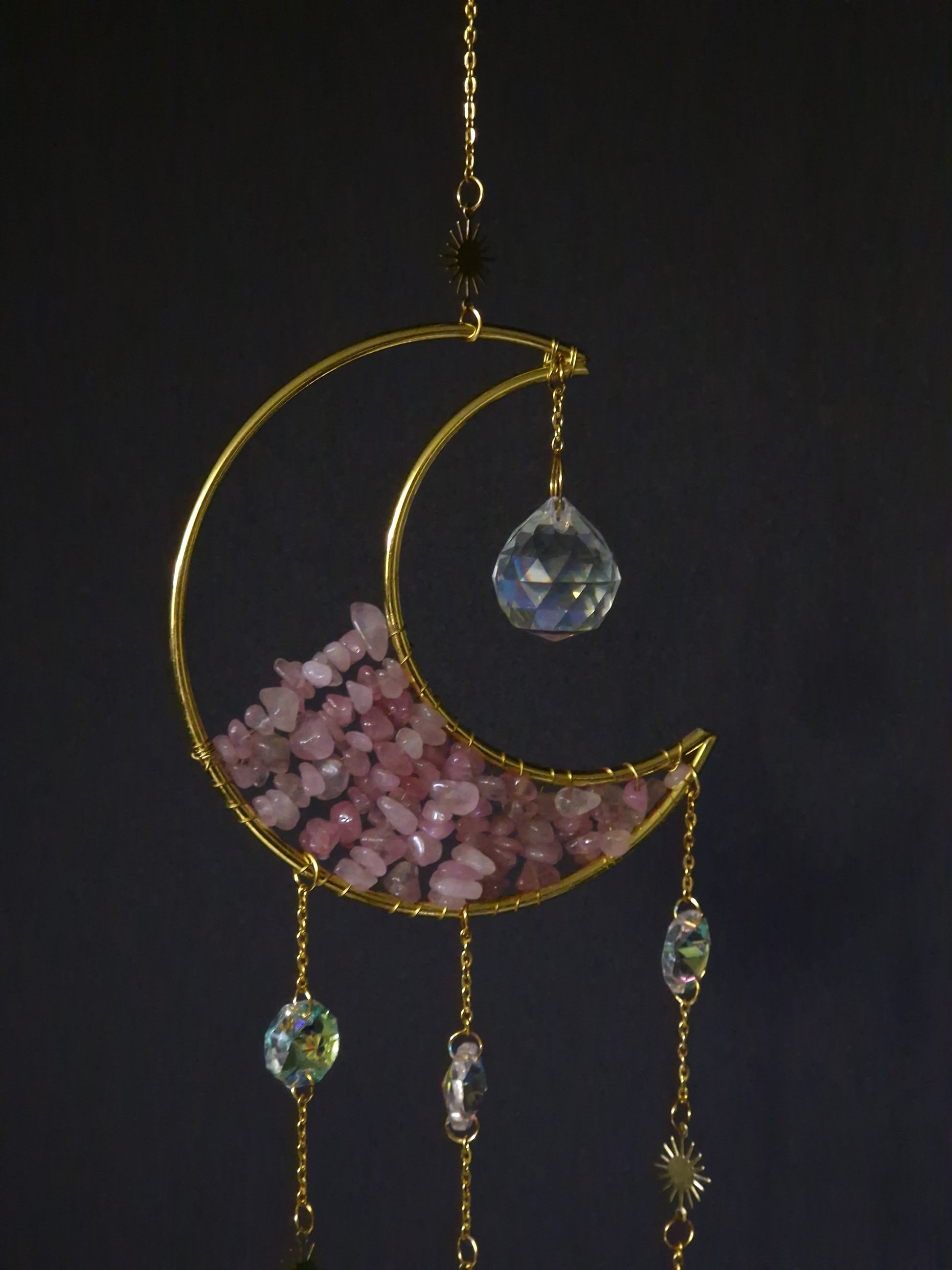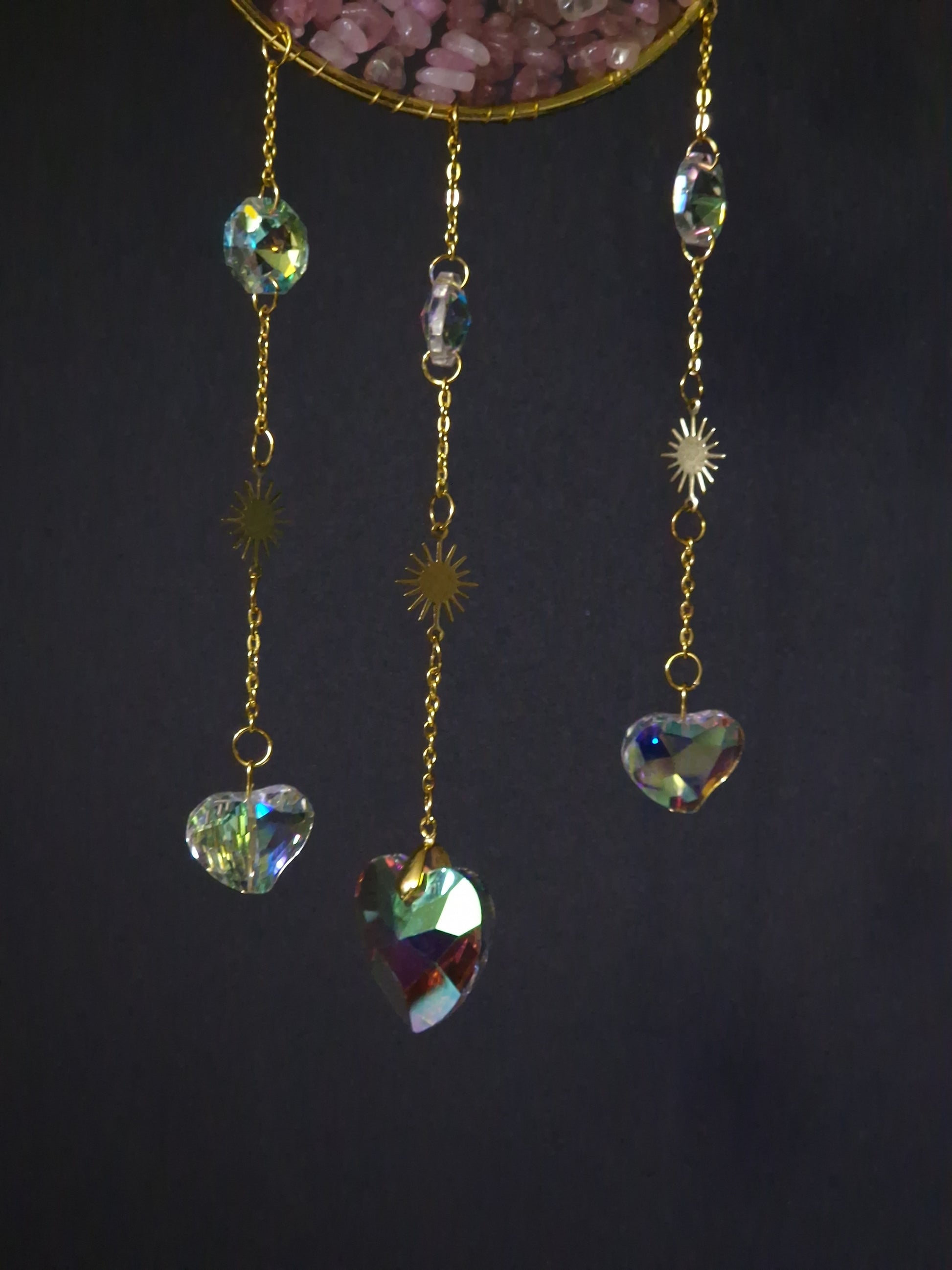 Mit Rosenquarzsplittern - Dem Rosenquarz wird eine sanfte, liebevolle Energie zugeschrieben. Er gilt als Stein des Herzens, der emotionale Heilung fördern, Selbstliebe stärken und Harmonie in Beziehungen bringen soll.