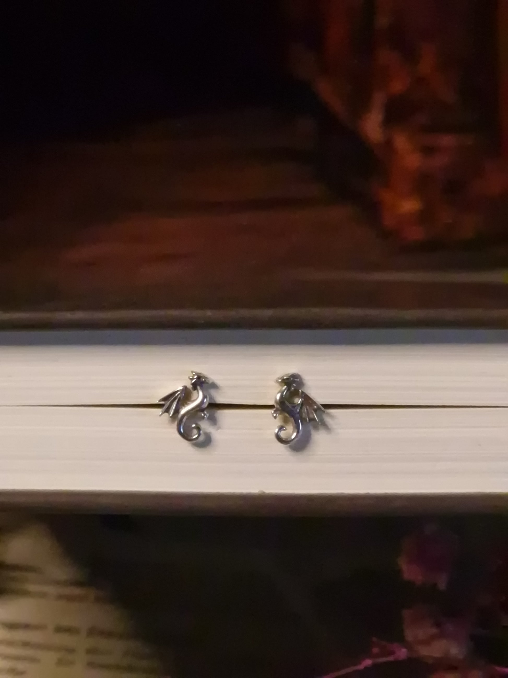 Diese feinen Drachen-Ohrstecker ruhen wie uralte Schutzgeister am Ohr – ruhig, wachsam und voller verborgener Stärke.