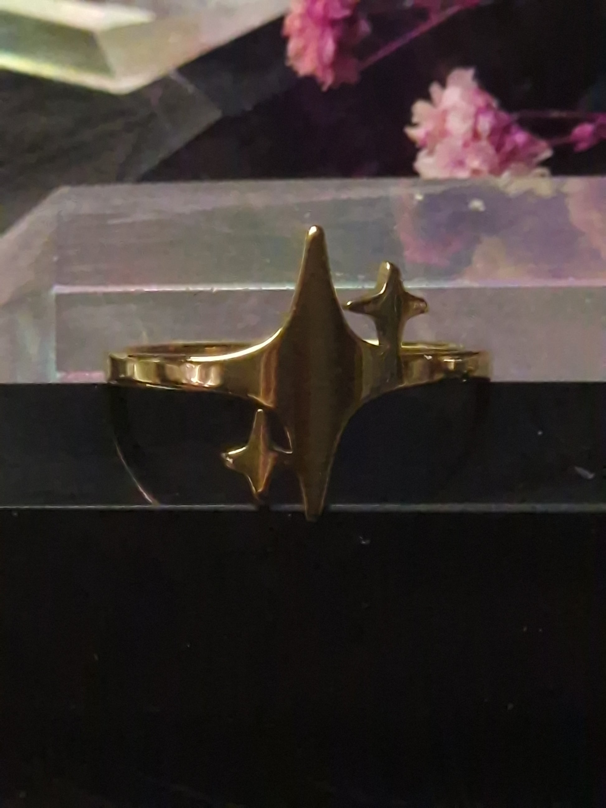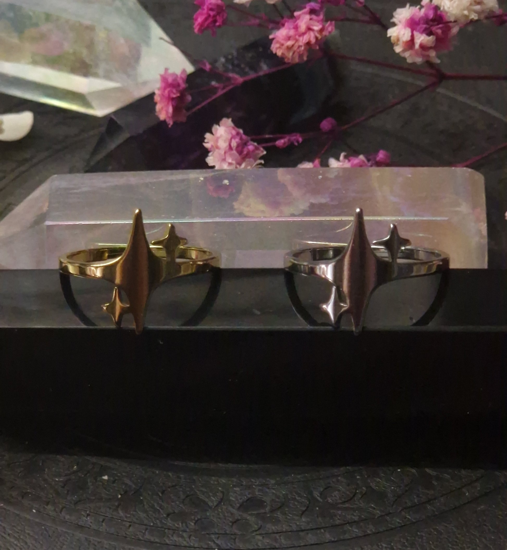 Ein himmlischer Begleiter für alle Seelen, die nach Führung und Licht streben. Der Stern Edelstahl Ring verbindet beständiges Metall mit symbolträchtiger Form – ein funkelnder Leuchtpunkt am Finger, der deine Träume und Ziele stets im Blick behält.